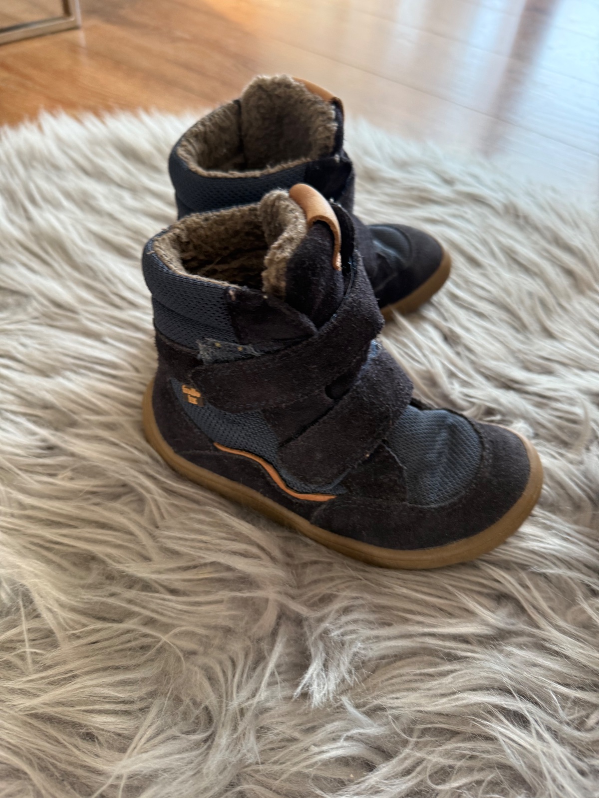 Suprácké teplé zimní boty - uvnitř mají huňatý kožíšek a ještě navíc huňatou vyjmutelnou vložku. Stav viz foto (jedna špička trošku okopnutá) - bez vážných vad. Jsou po jednom dítěti.