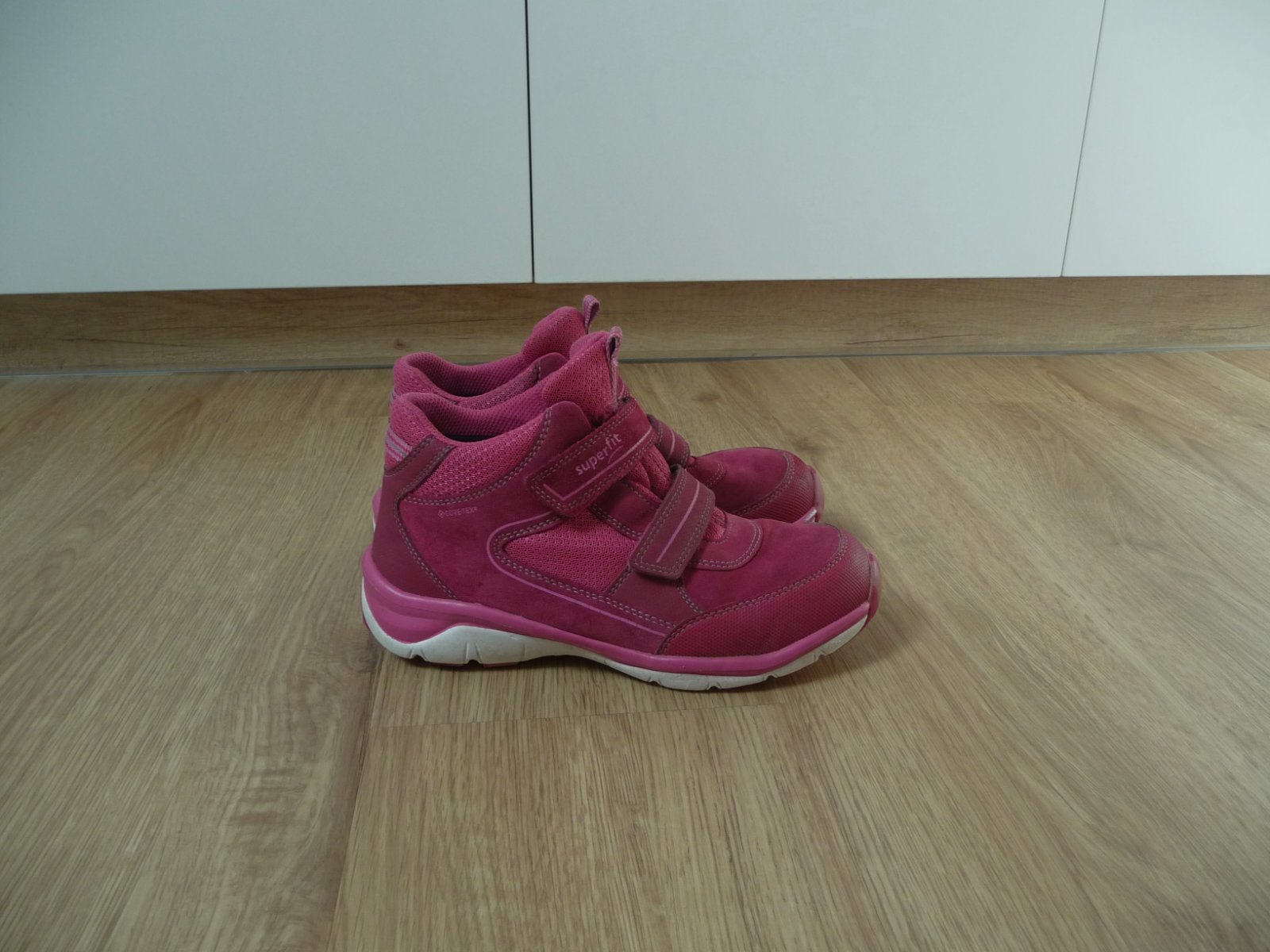 Prodám dívčí celoroční boty zn. Superfit vel. 35. Nošené pouze dcerou na konci sezóny, top stav, bez vad, téměř bez známek nošení. Svršek ze syntetiky v kombinaci s kůží a textilem, vnitřní část z lehkého fleesu, prodyšná a nepromokavá membrána Gore-Tex, vyjímatelná stélka, pevný opatek, lehká, pružná a ohebná podešev, reflexní prvky, zapínání na suchý zip - suché zipy naprosto funkční. Délka stélky 23 cm. Poštovné a balné: 89,- PC 1870,- nyní CENA: 650,-