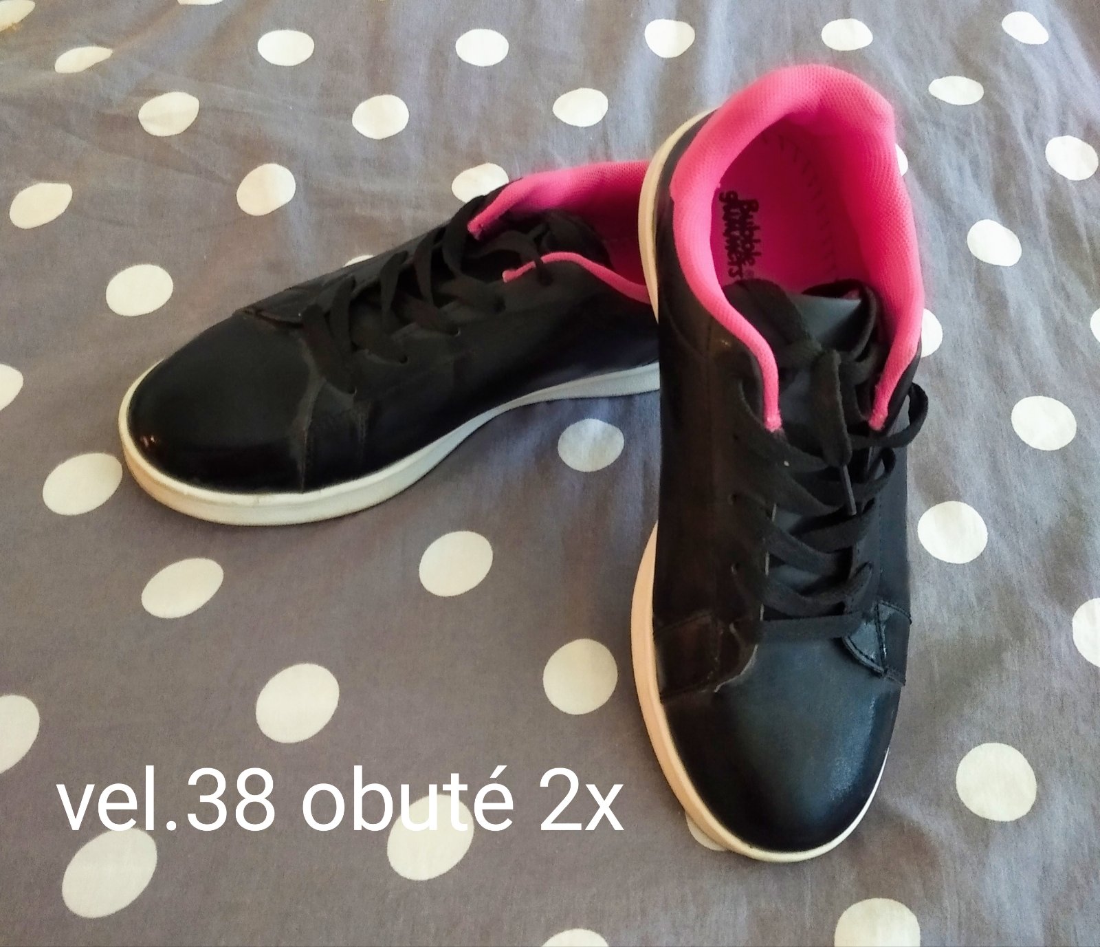 vloni chvilku nošené v hodinách TV, díky karantenam, spíš visely v pytlíku v šatně, super stav, velikost psaná 38 2/3 ale nositelné od vel. 38, jsou hezké černé, jenom bílé podrážky už tak nezáří, ...