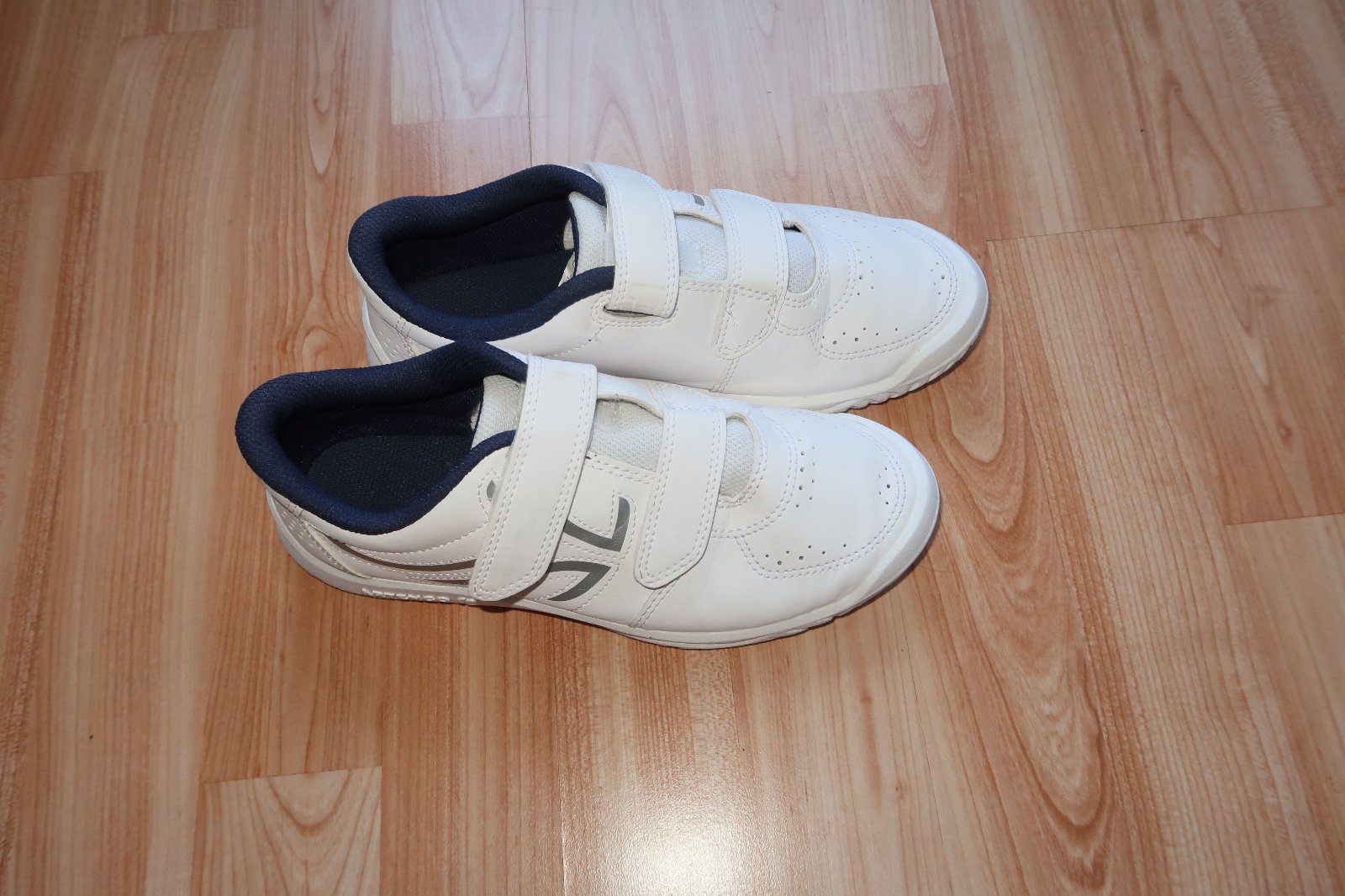 Bílé tenisky z Decathlonu, vel. 36, nošené na tělocvik, nezničené, stélka čistá.