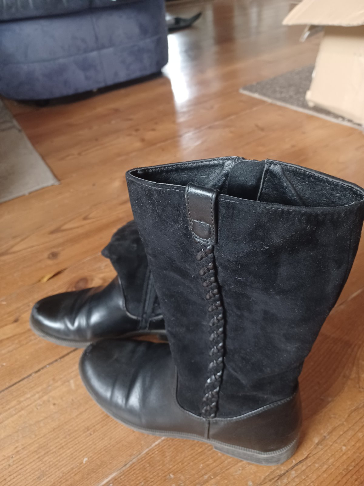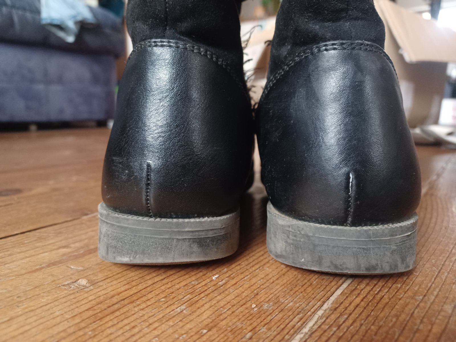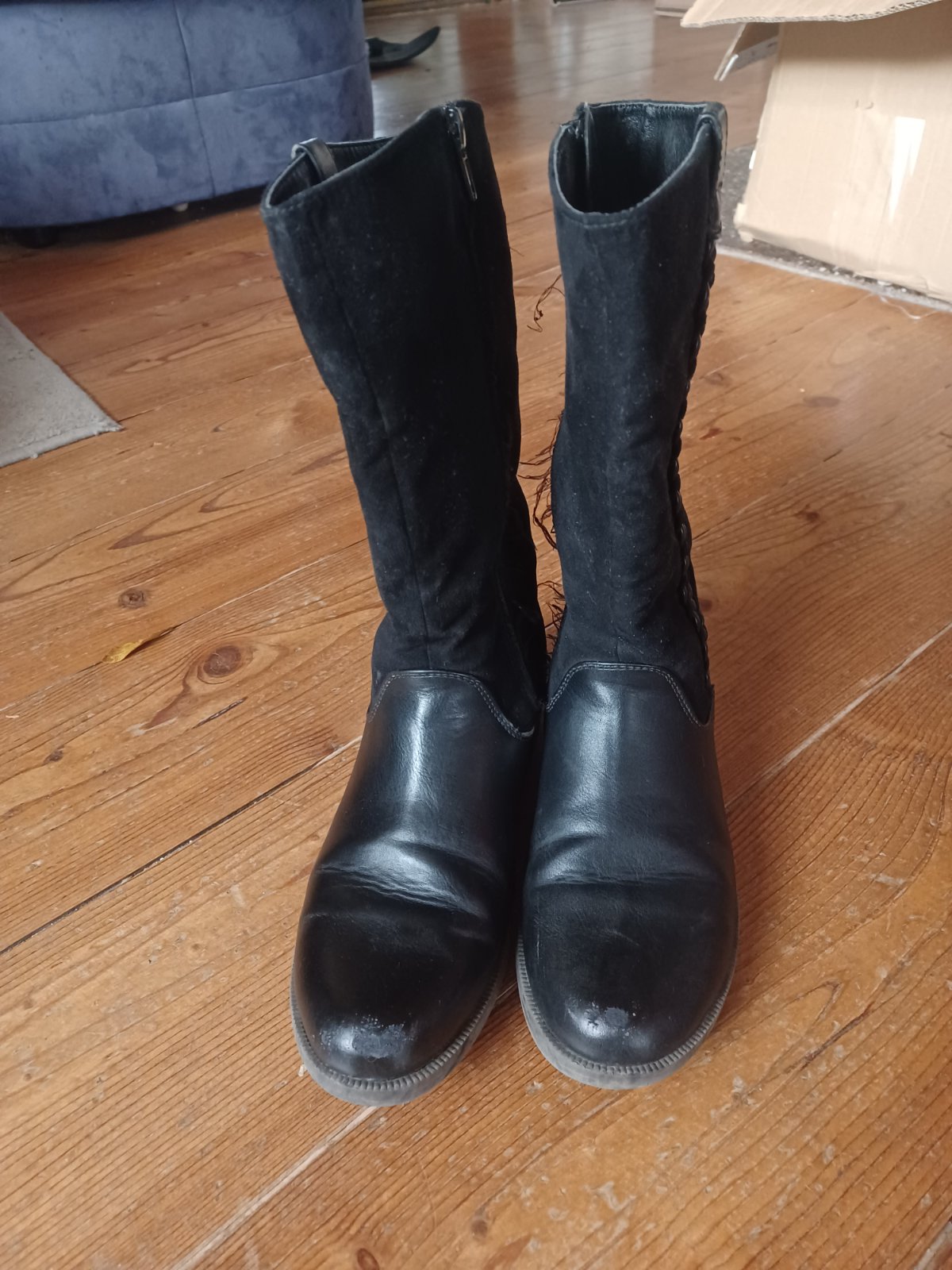 Černé zimní boty, Graceland, vel. 35, nošené jednu sezónu, na špičkách odřená vrchní barva, viz foto. Délka stélky cca 23,5 cm, těžko se měří, nejde vyndat stélka.