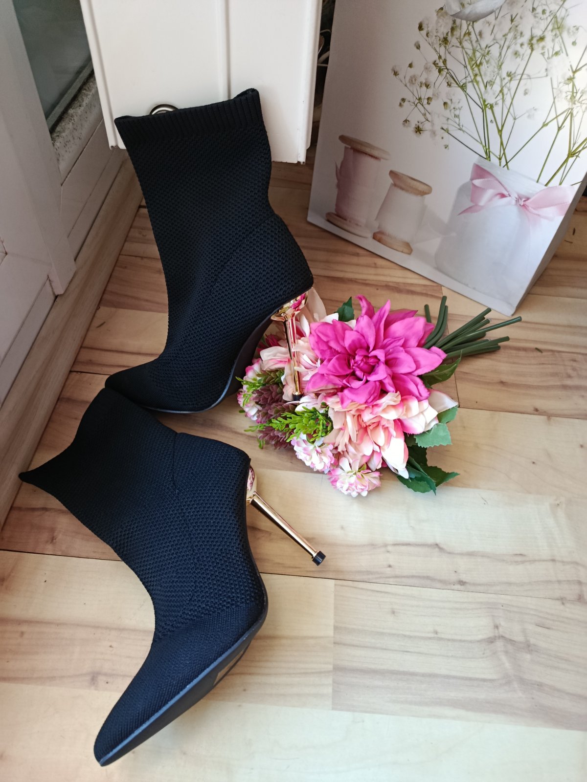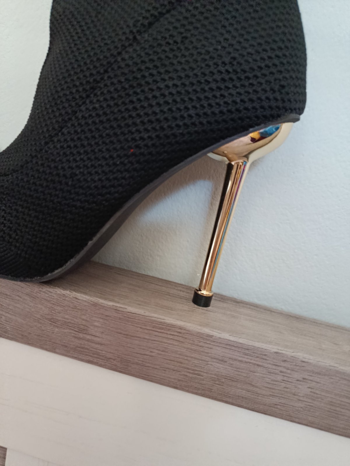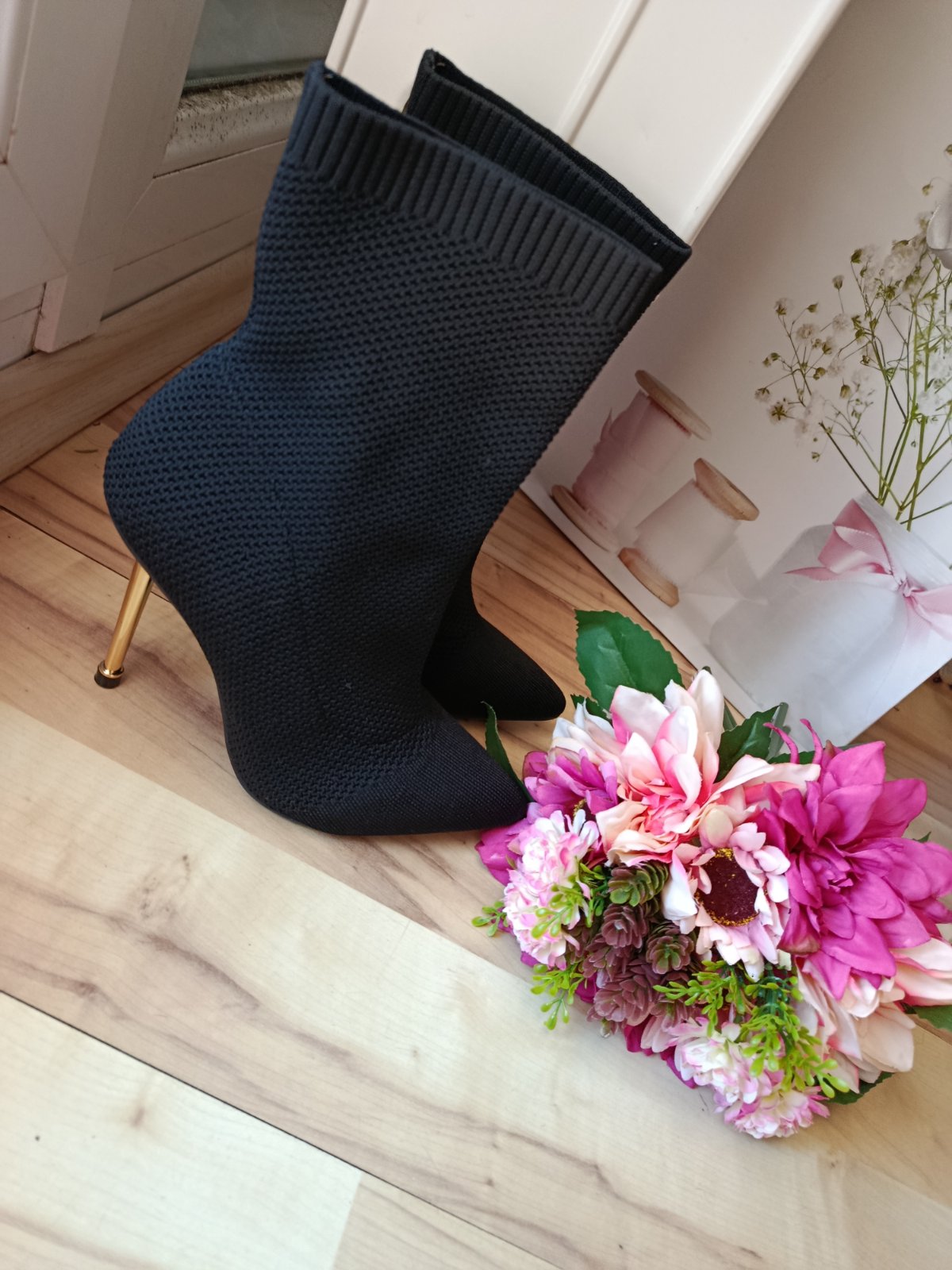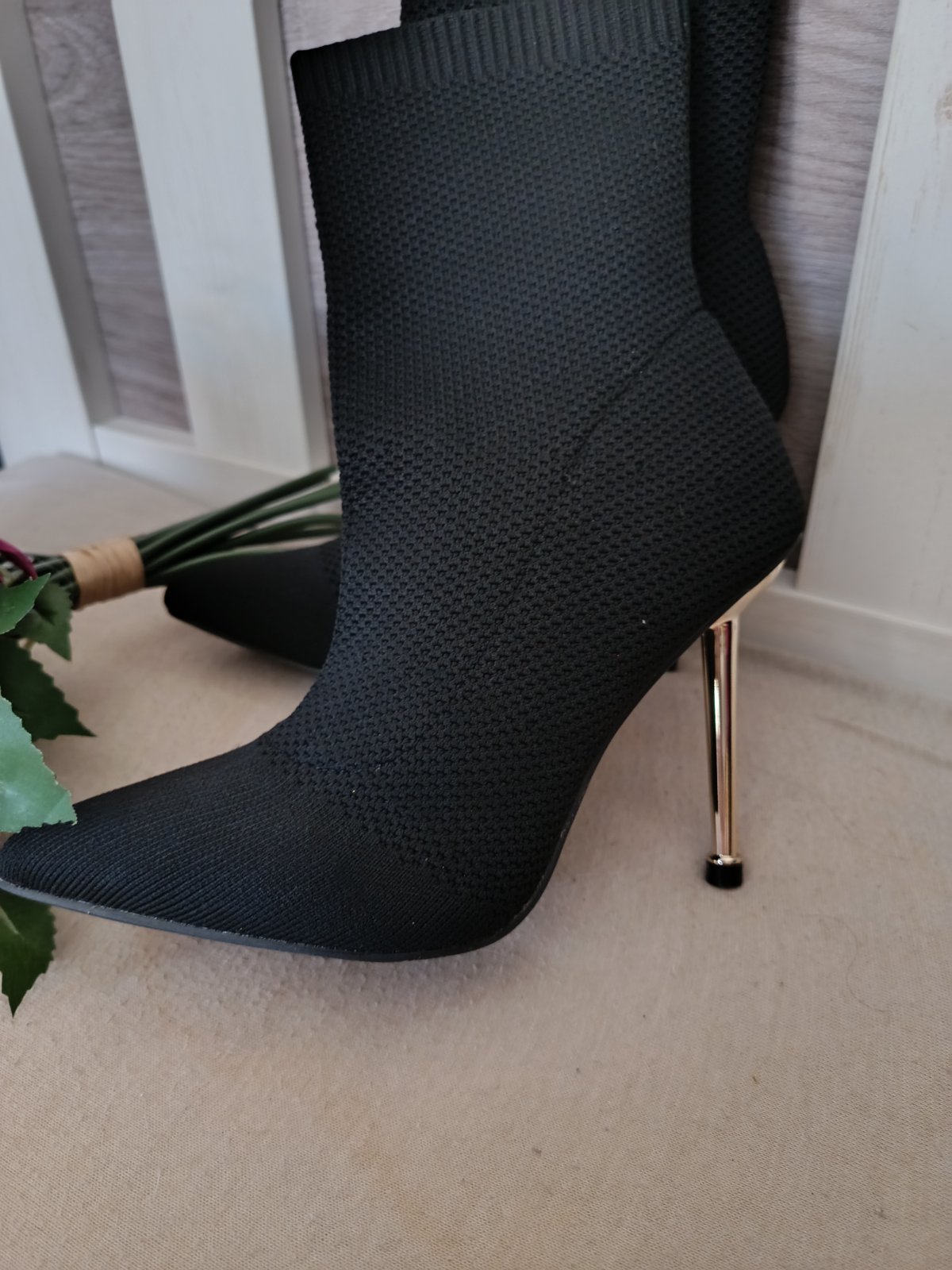 " Nové " polokozačky na kovovém jehlovém podpatku. Ponožkový vzhled - materiál pruží....Poštovné - balíkovna za 85 Kč nebo zásilkovou za 90 Kč.