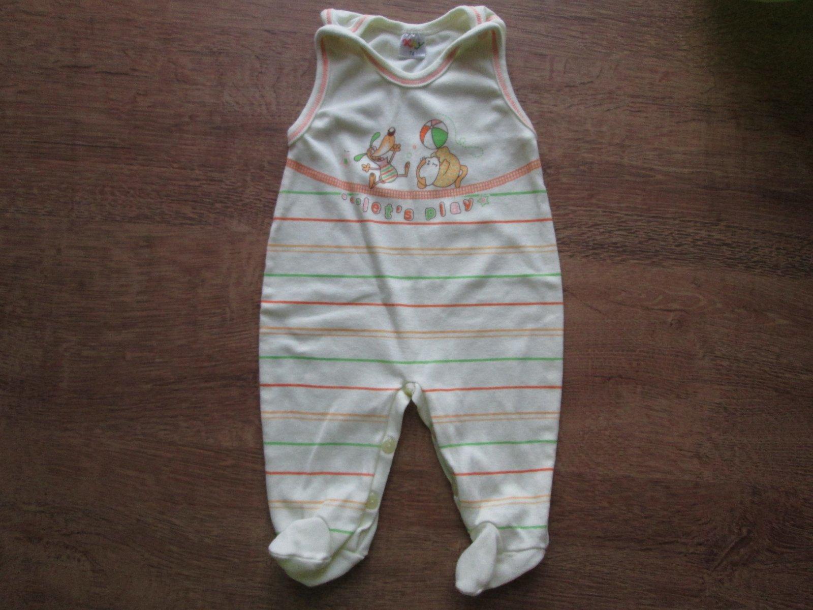 Prodám bavlněné dupačky velikost odpovídá spíše 68, i když značeno 74. V pěkném stavu, bez děr a fleků.