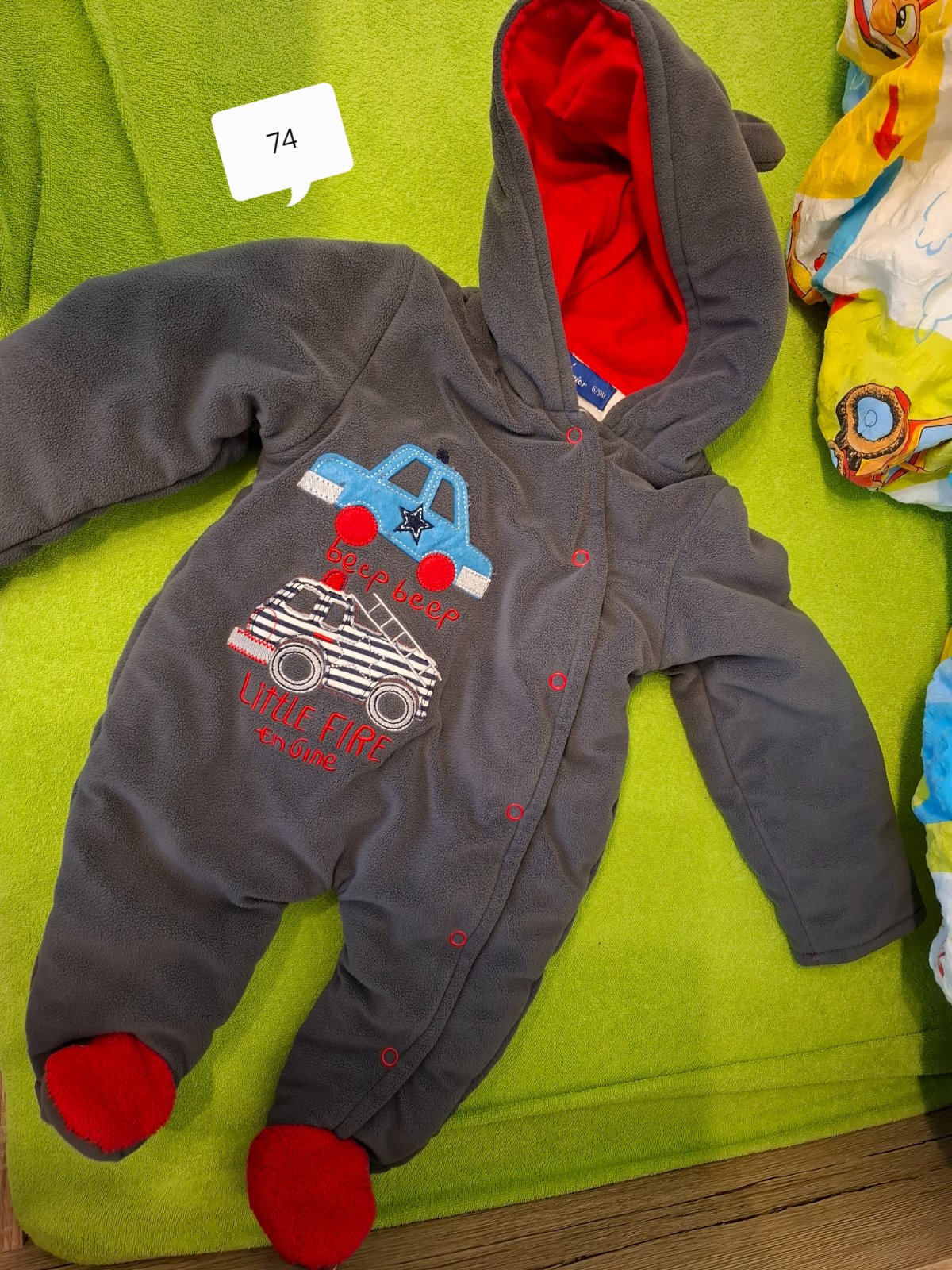 Příjemný teplý overal vel. 74 (ale odpovídá spíše vel. 80). Nošený a hodně oblíbený. Do kočárku ideální.