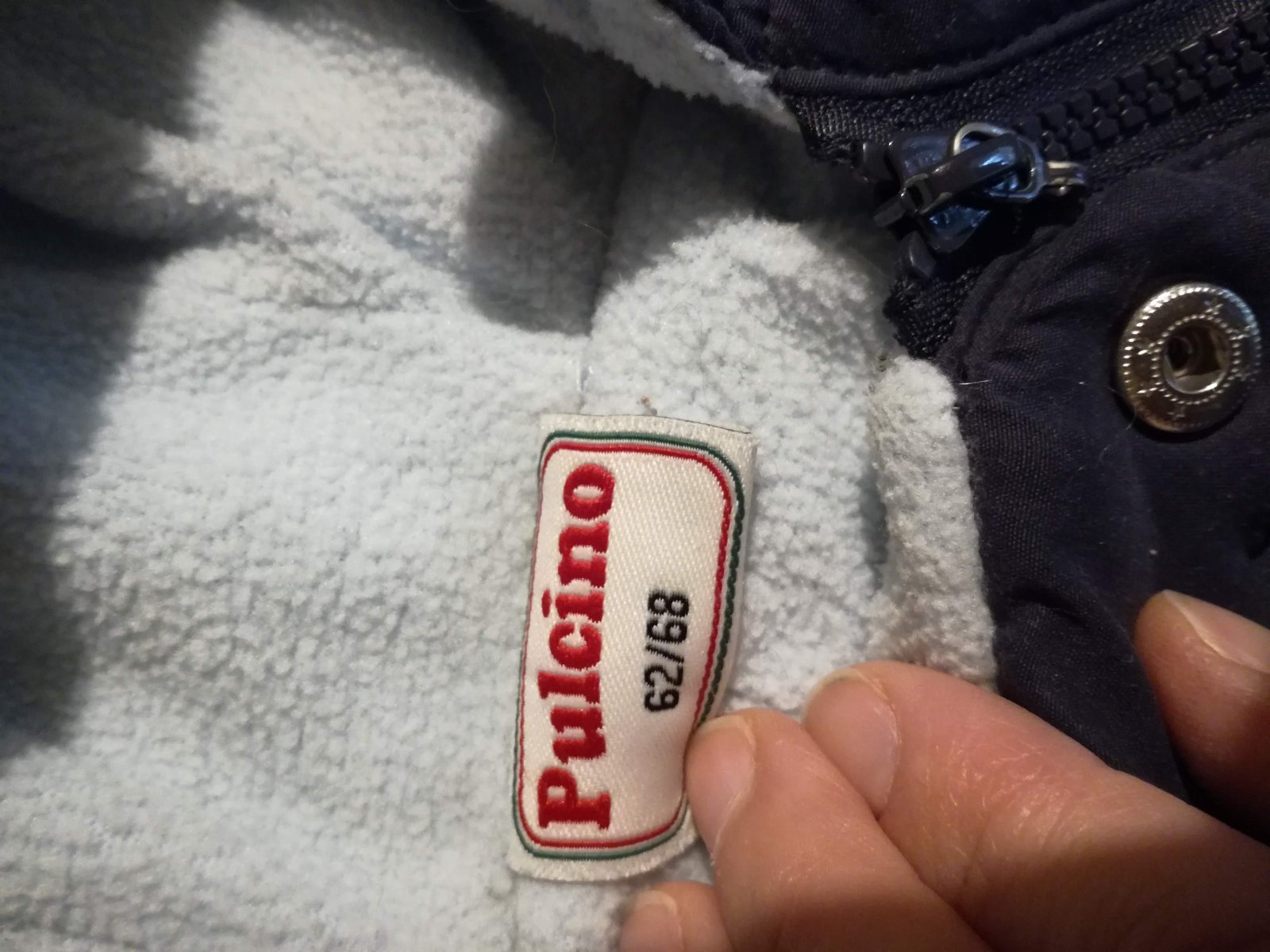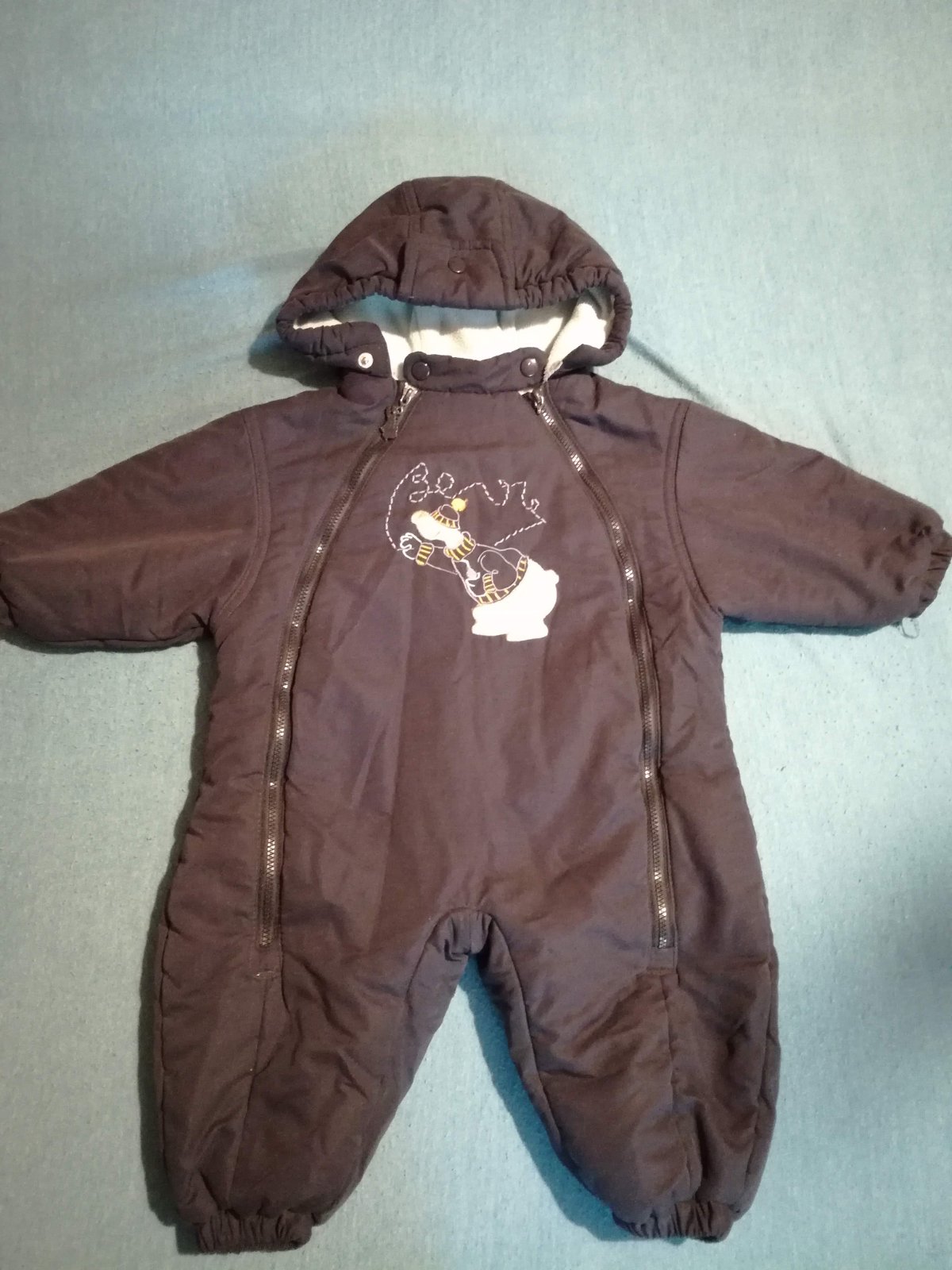 Modry zimni overal. Jeden zip ma ulomeny uchop, viz foto, ale stale je za co to zapnout. Predani lze take domluvit Praha-Kolovraty, Pardubice-centrum nebo Praha-Radlicka. Pokud by bylo potreba, rada cokoli premerim.