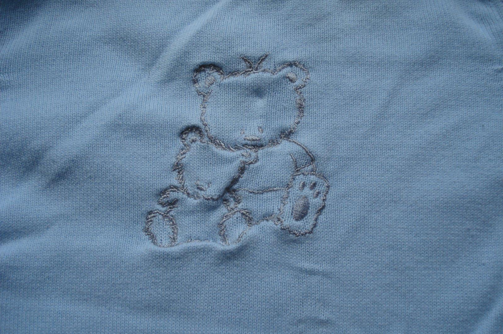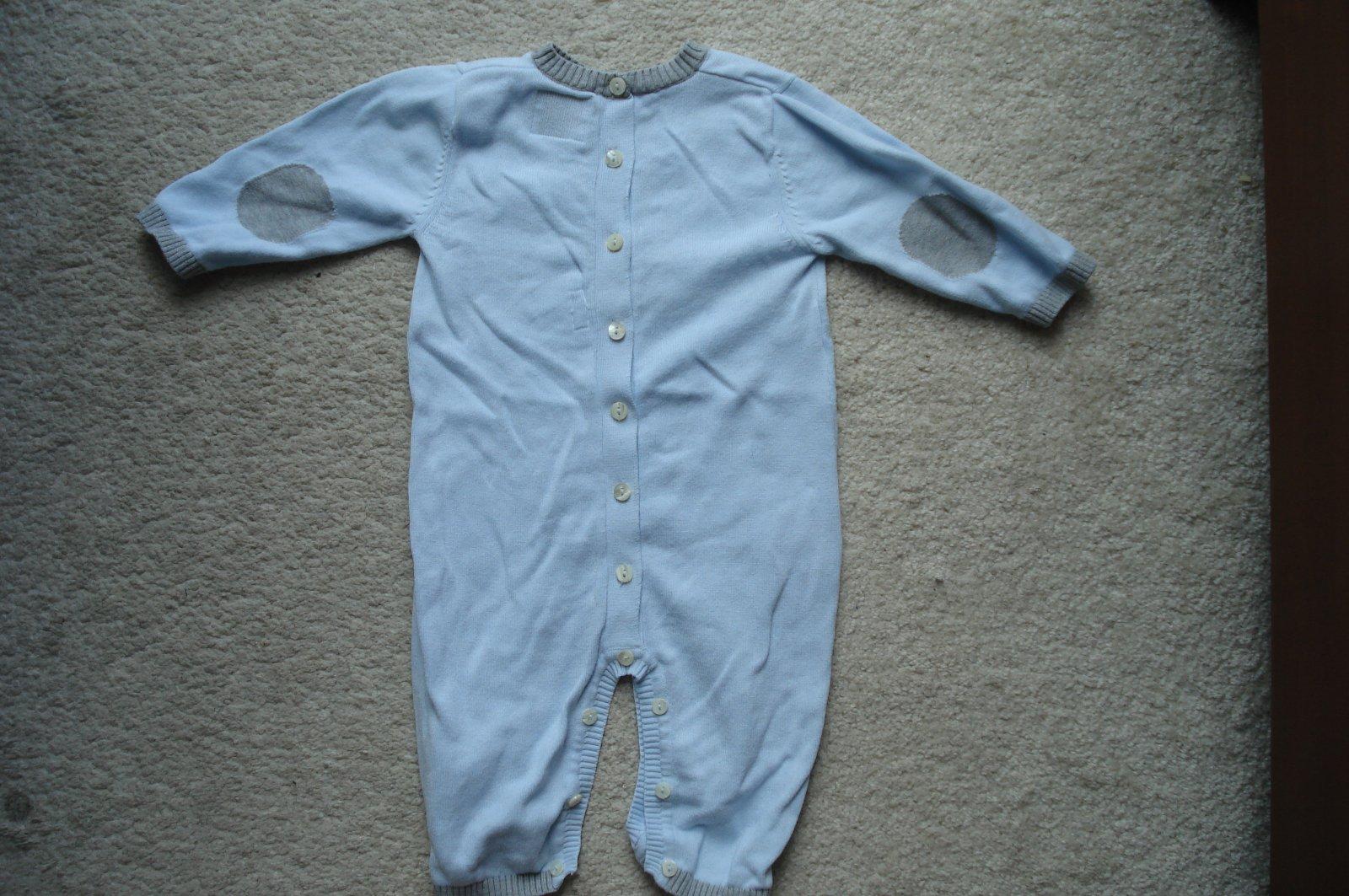Nádherný overálek jakoby pletený.Bez vad jako nový.Celková délka je 56 cm.Složení 100% bavlna