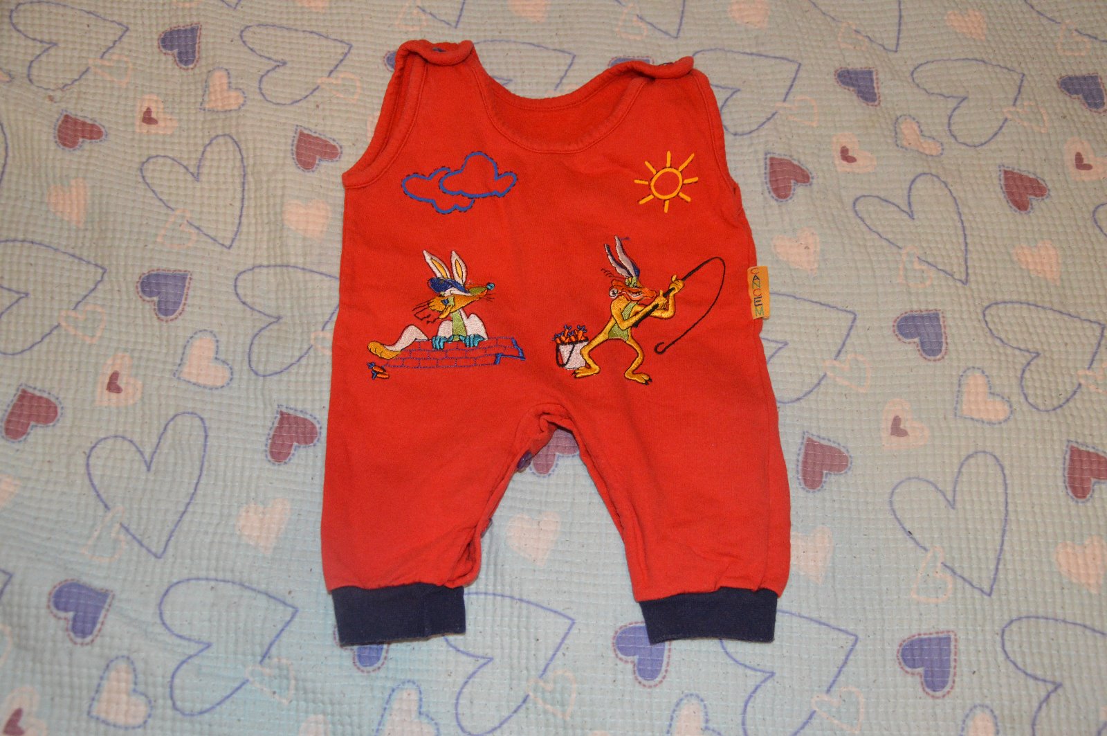 červený teplý overal - teplákovina, vel. cca 62/68, měřte: délka celkem 44cm, vnitřní nohavice 15cm, hezký, bez vad.