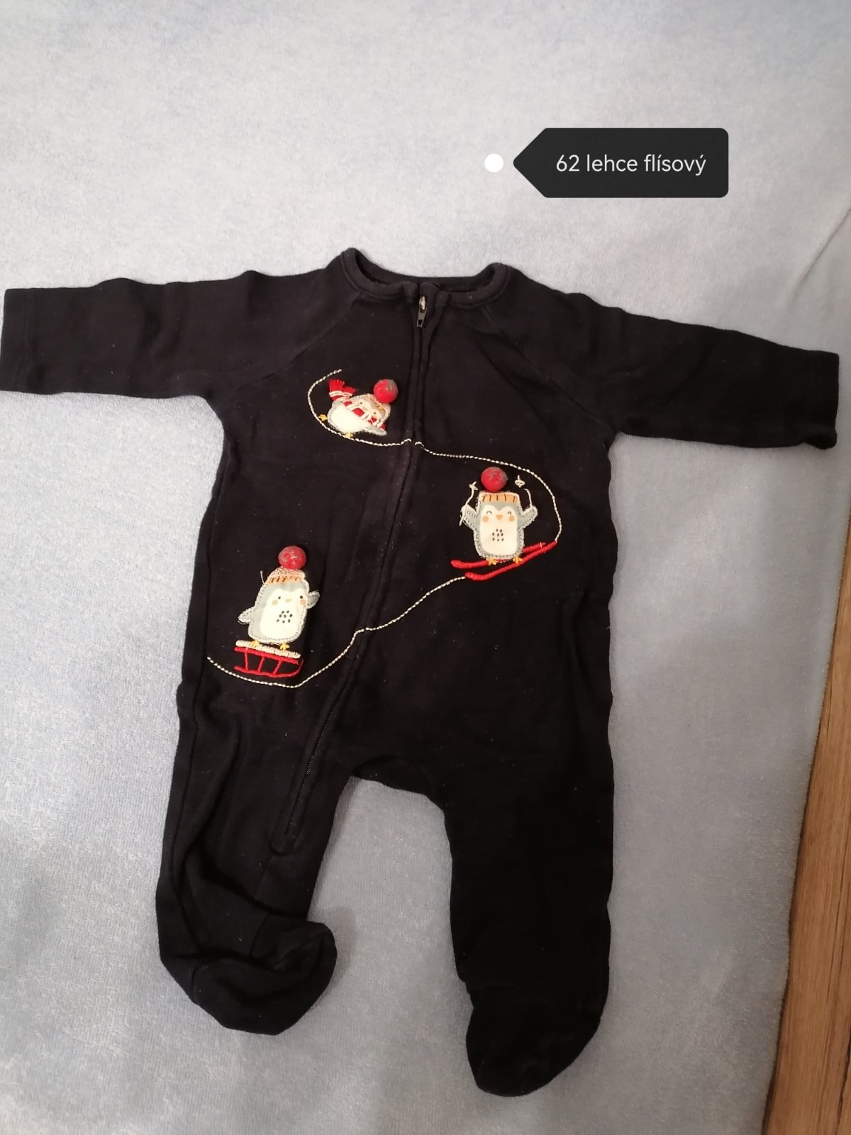 Prodám kojenecký overal na zip, velikost 62. Je to tenký flís. Bez fleků a děr. Pošlu na dobírku přes Zásilkovnu.