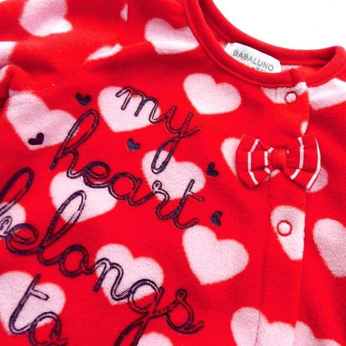 Kojenecký fleece overal oblíbené značky Babaluno s nádherným srdíčkovým vzorem. Krásně zahřeje v chladnějším období a je tak výborný za zimu! Zapínání po boku na patentky
