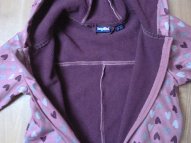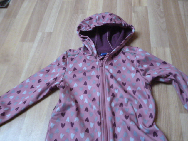 Nošená , pěkná, vada nevidim, uvnitř flís, délka je 95 cm, rukáv od krku jr 44 cm, průramky 2x36 cm, vnitřní nohavice 40 cm, psaná vel.4-6 zn.Lupilu barva je růžová