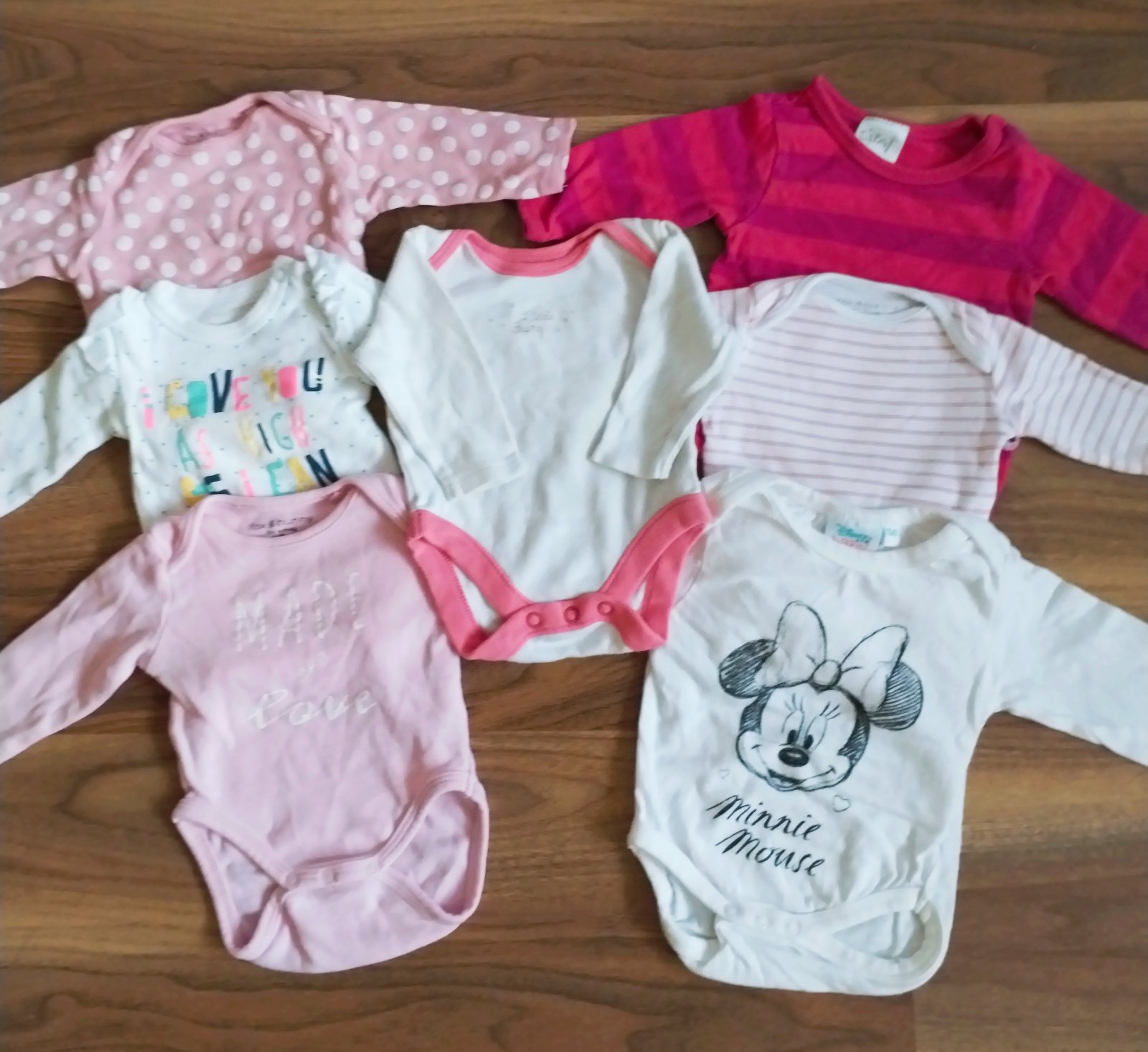 uved. vel. 50-56, ale odpovídá spíše 56-62 min. nošený, ale při žehlení se mi bohužel poškodil obrázek - viz foto, nic strašného, ale už není 100% zdarma k nákupu nad 100,-