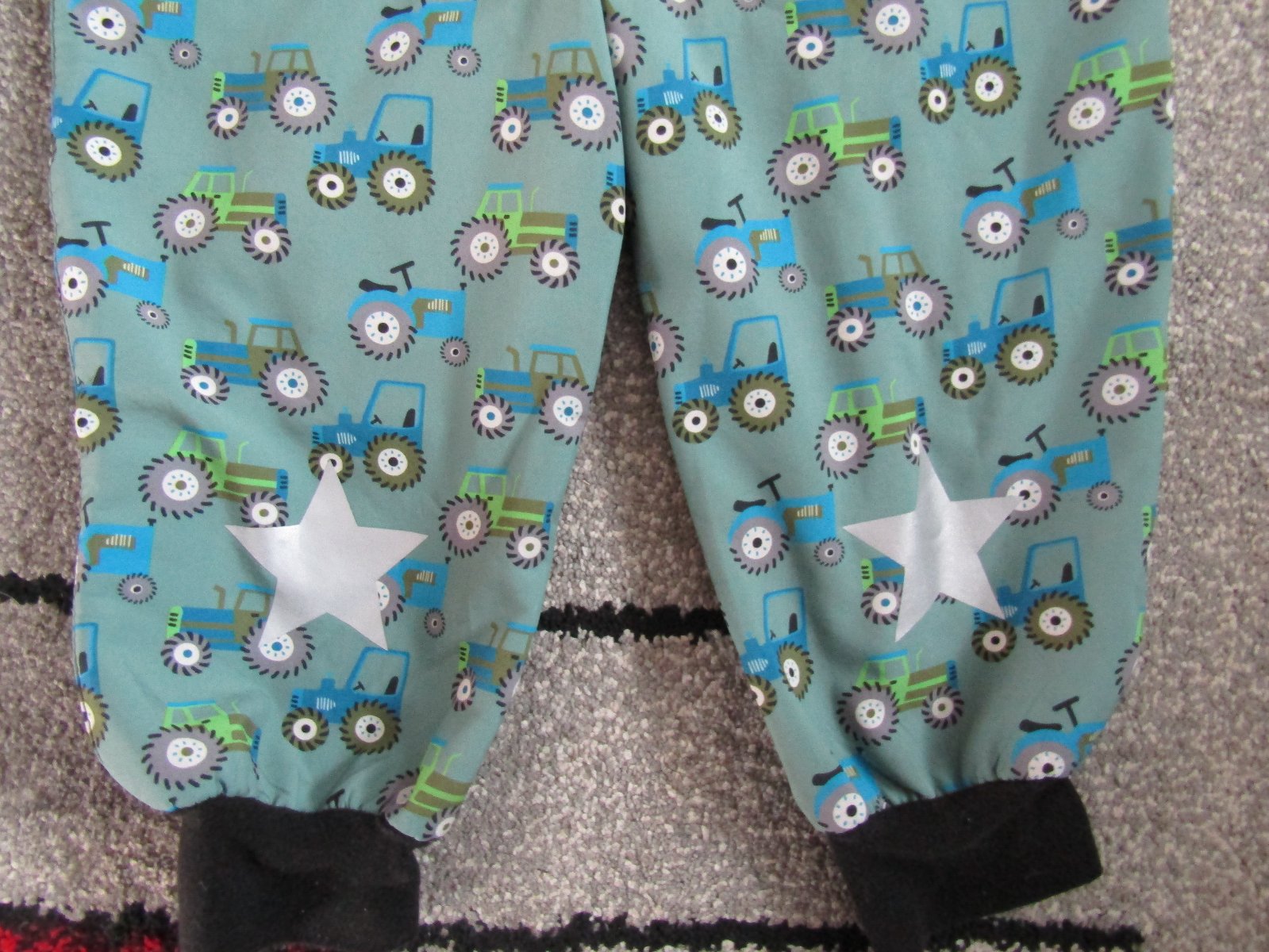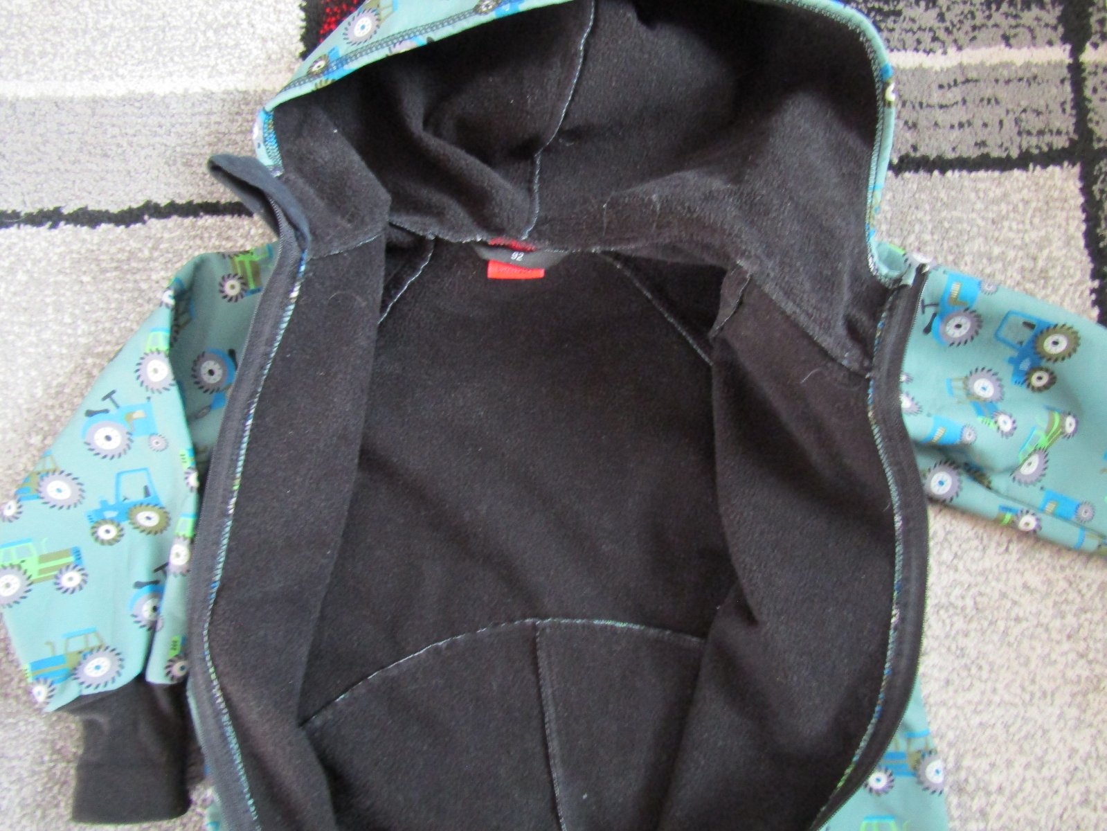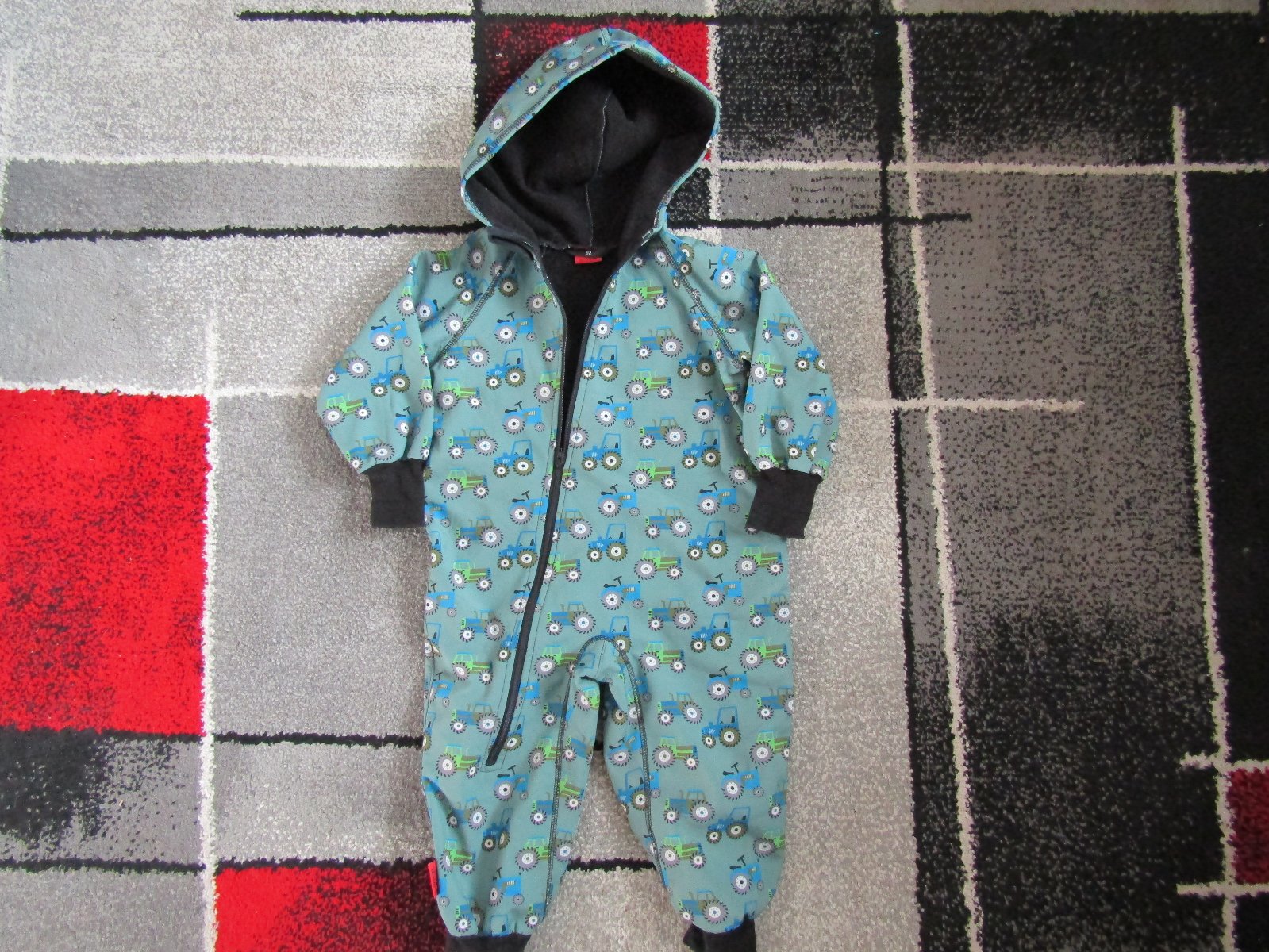 Softshelový overal-podzimní- je vel.92 zn.Ielm-délka( i s rantlem) je 79 cm,délka vnitřní nohavice je 36 cm,z vnitřní stany má flauš,má ušmudlané nohavice a viditelný flíček na zadečku viz.foto(třeba se Vám podaří odstranit)