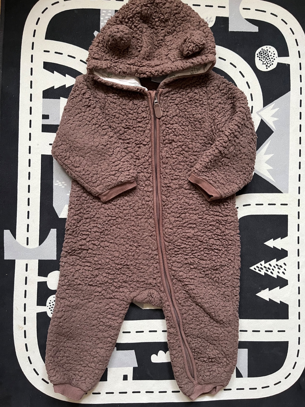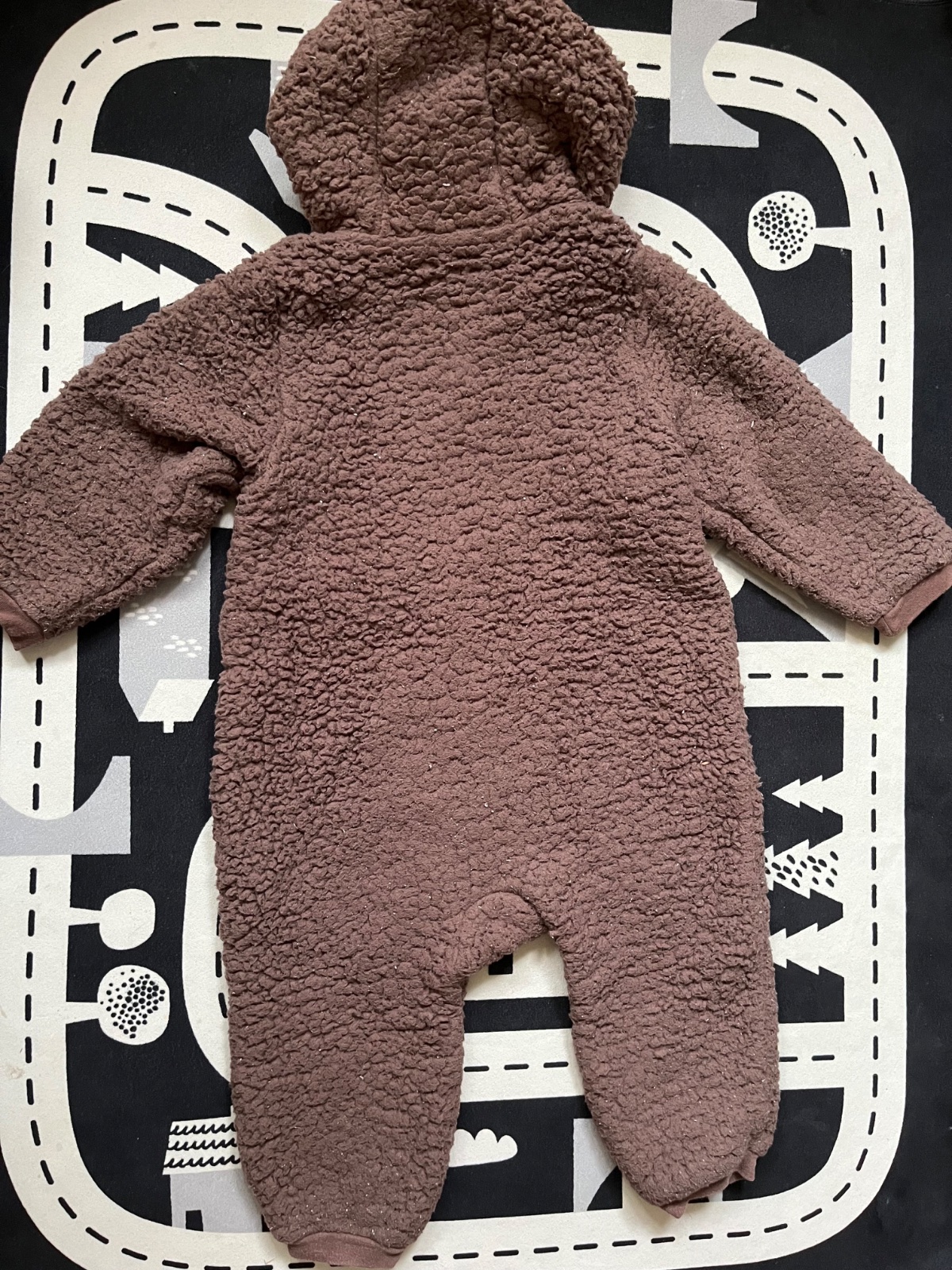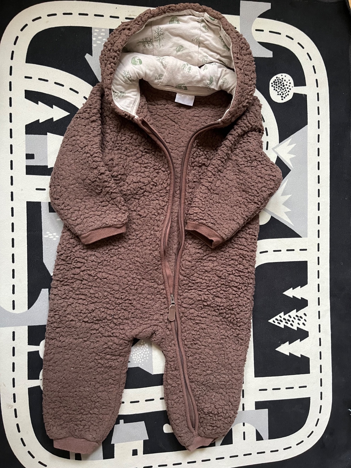Prodám málo nošenou kombinézu. Je velmi teplá a příjemná, na kapuci jsou malá medvědí ouška. Zipy jsou plně funční, není nijak odřená, prodřená, opraná či jinak poškozená.