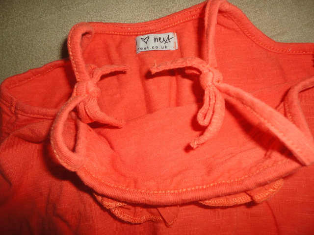 Krátce nošený, výrazně oranžový, bavlněný overal, kombinace s krajkou kolem výstřihu, na konci nohavic a u bočních kapes, v pase guma, uvedená velikost 4 roky ale měřte, u overálku kvůli pohodlí lze nosit i dříve, d. 55, boční 41cm, od středu gumy dolů 20cm, vnitřní d. nohavic 5,5cm, š. v průramku 30, v gumě v klidu 27cm