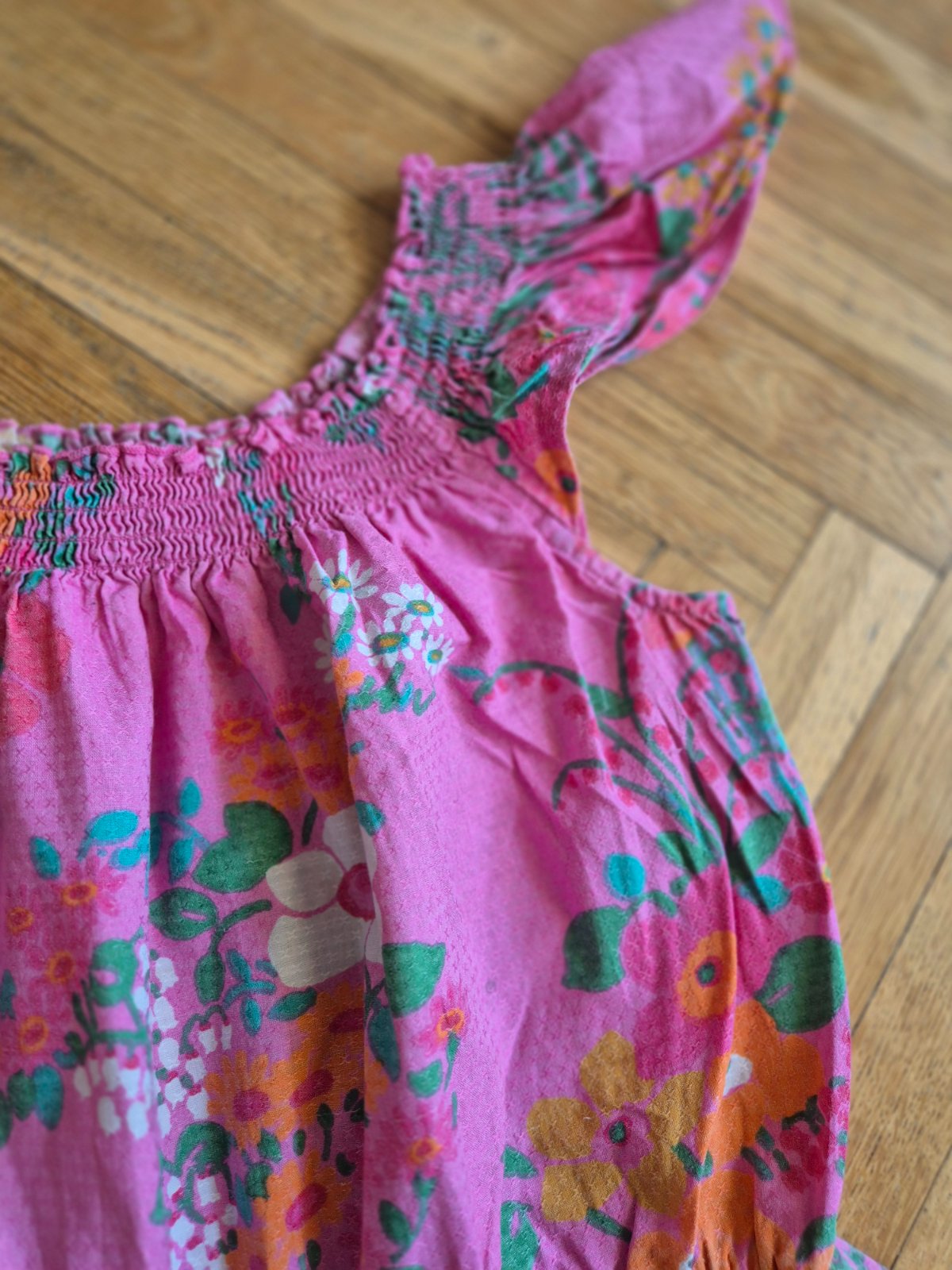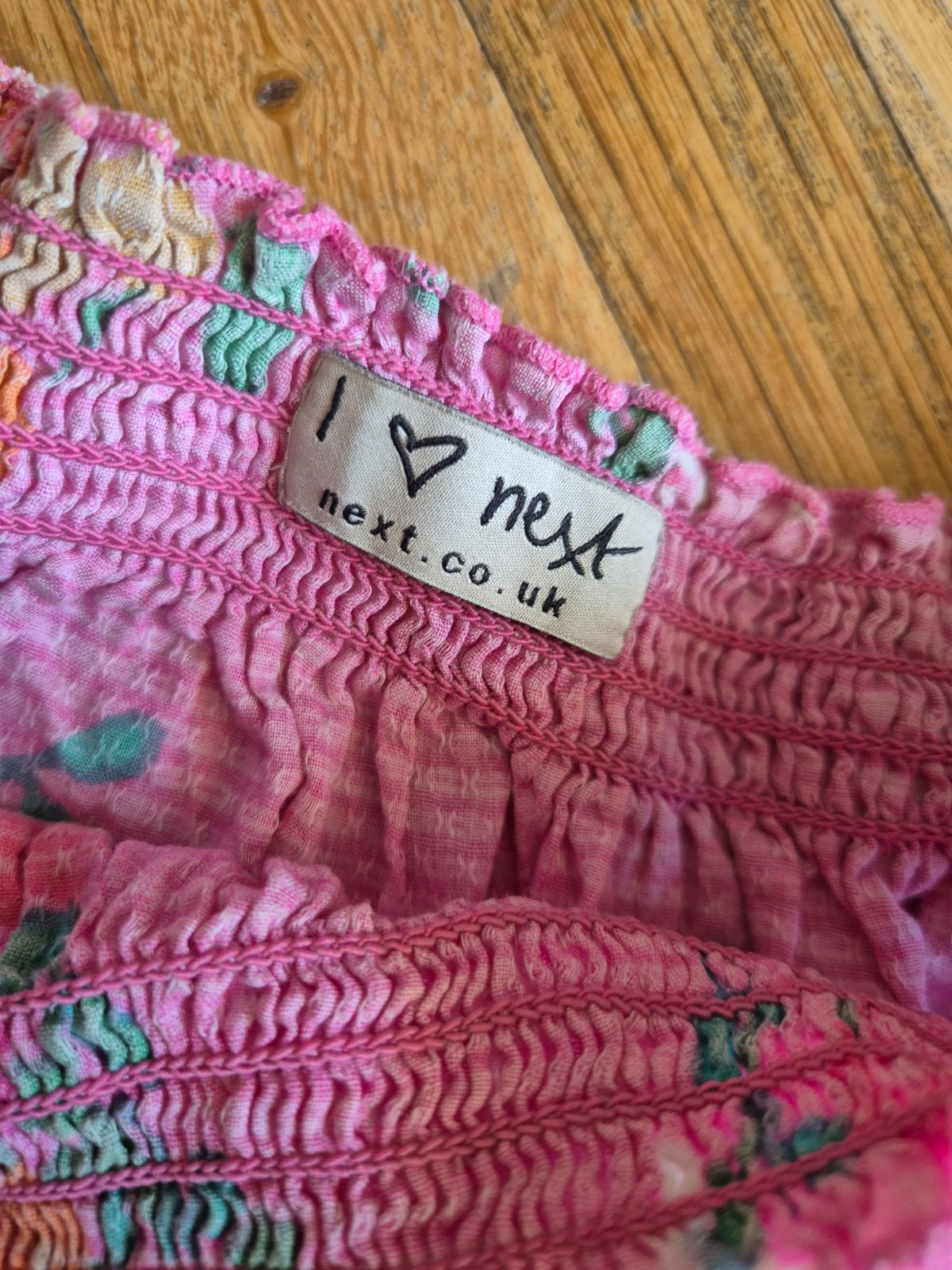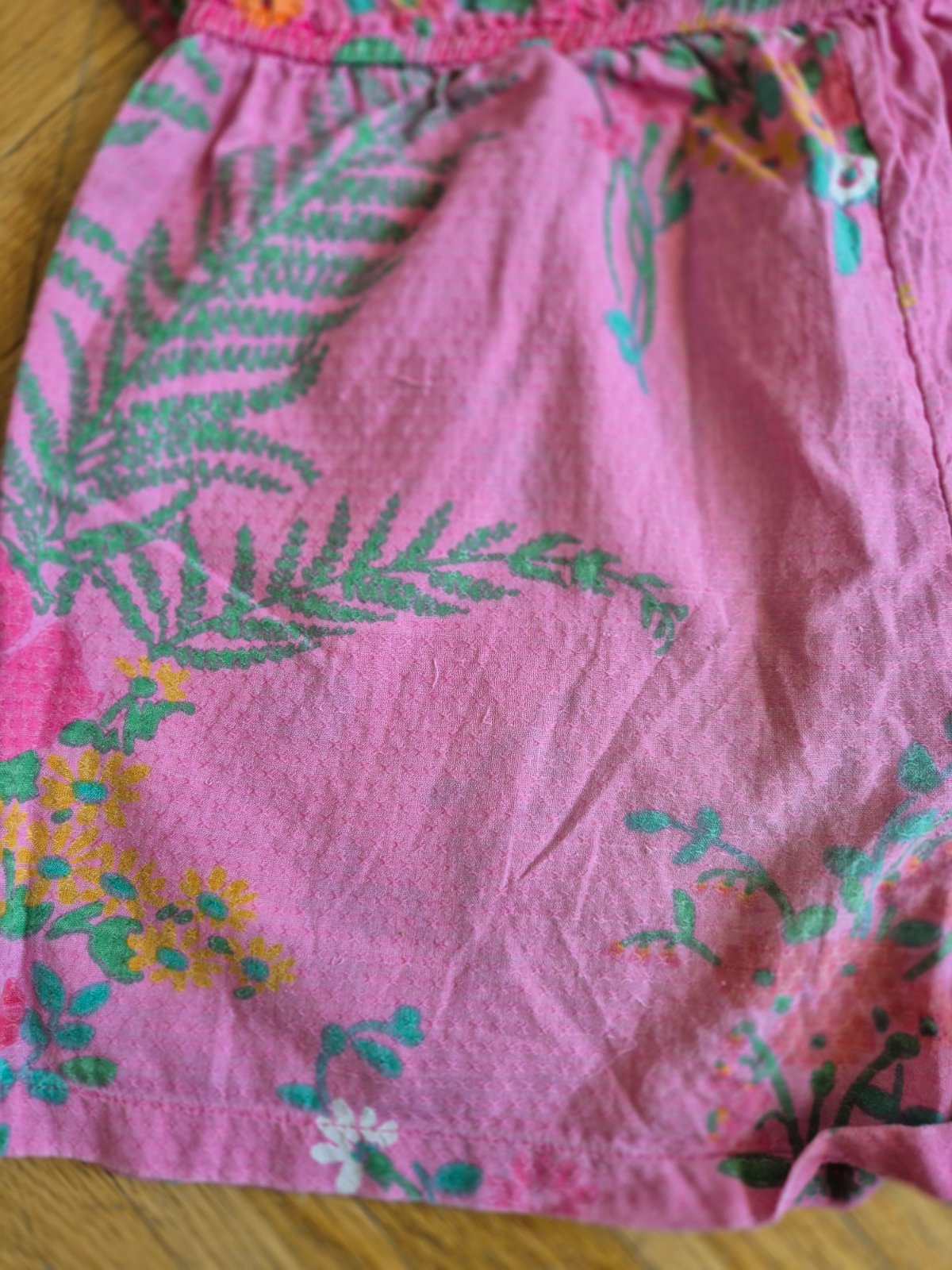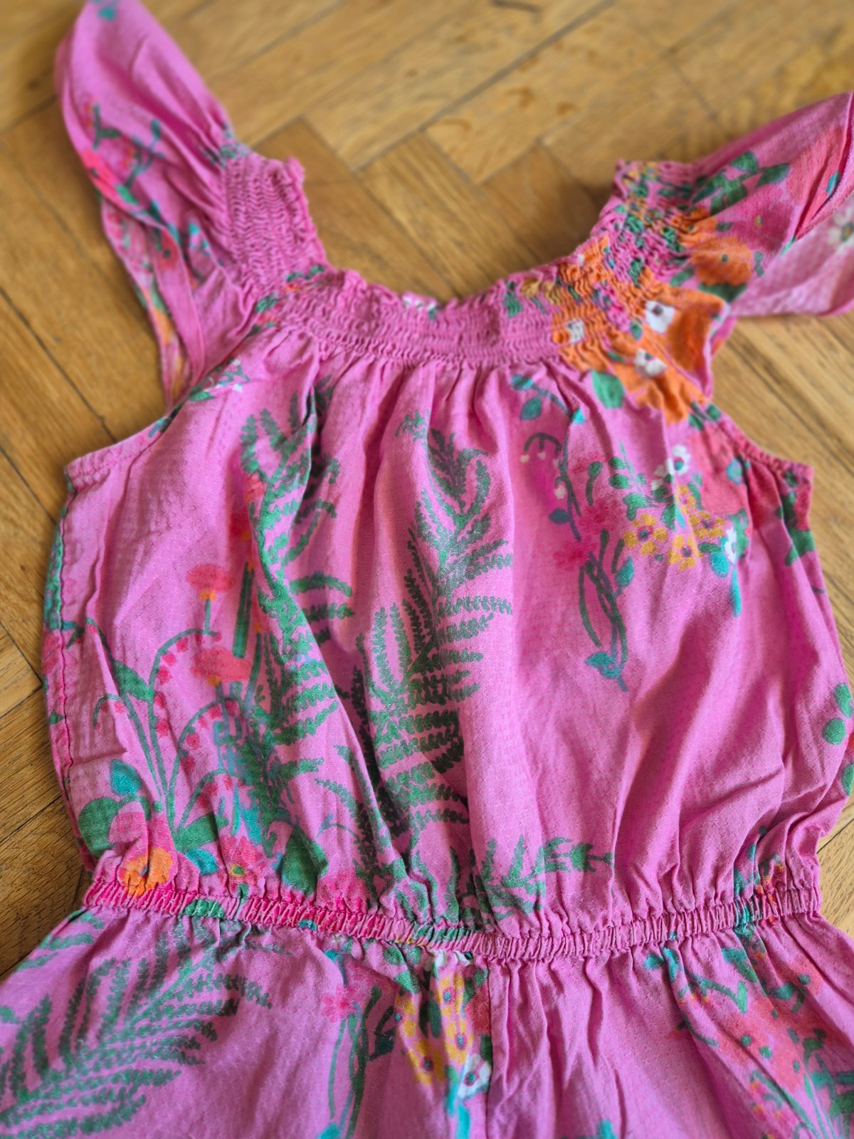 Bavlna, okolo výstřihu nařasený do gumy a volánky na rukávech, v pase guma