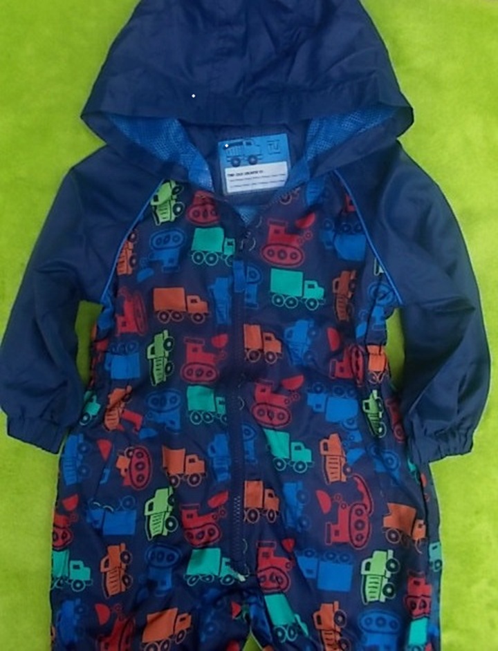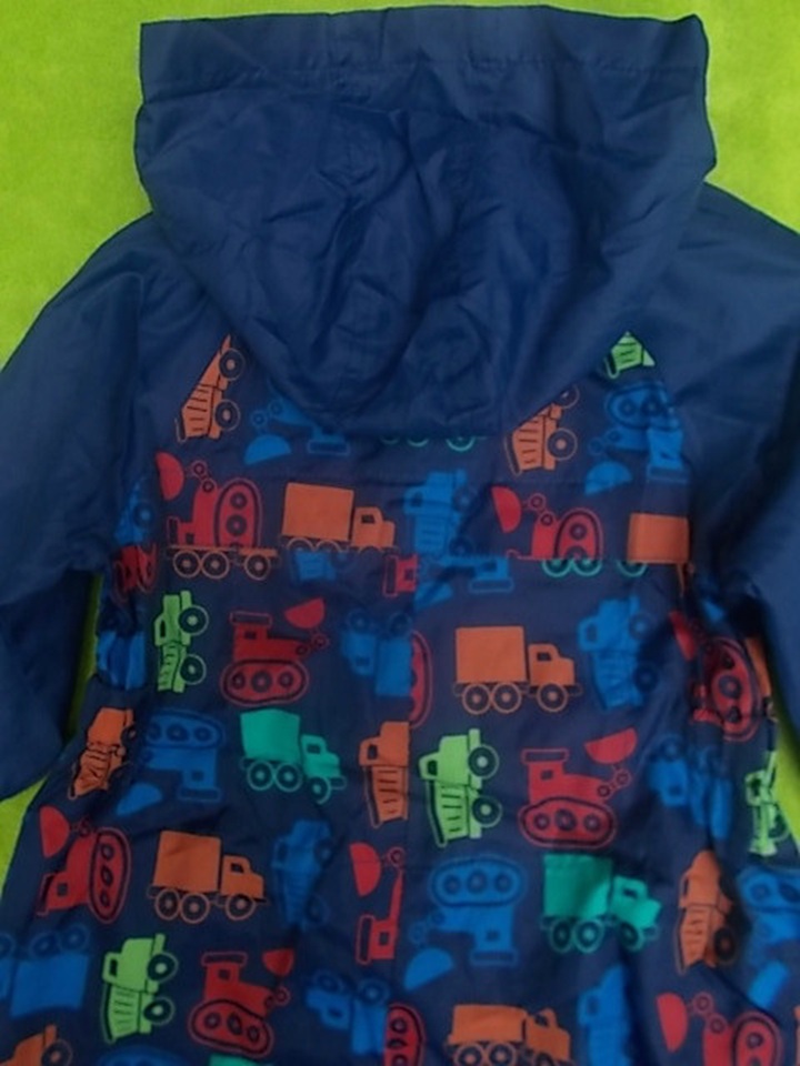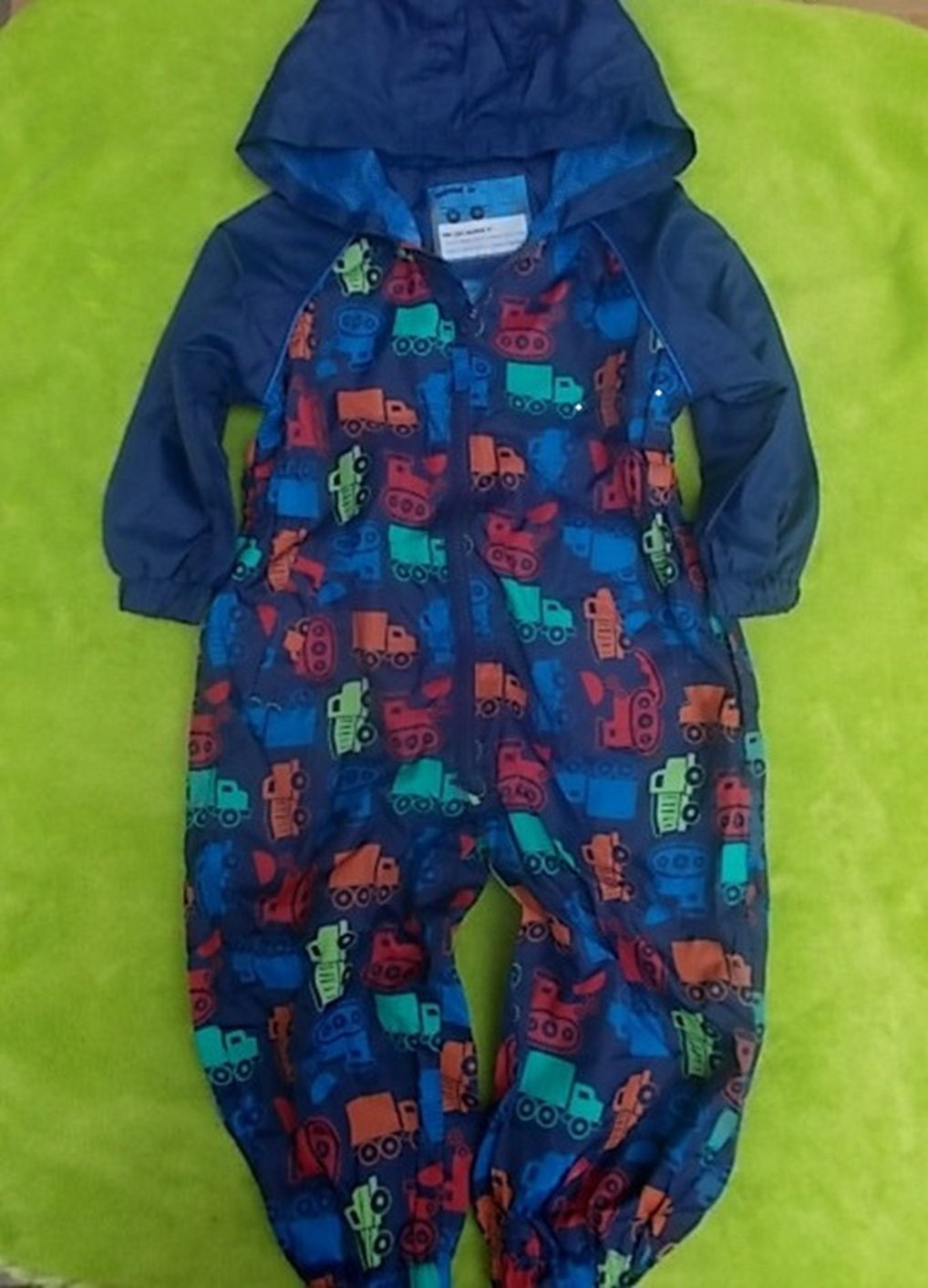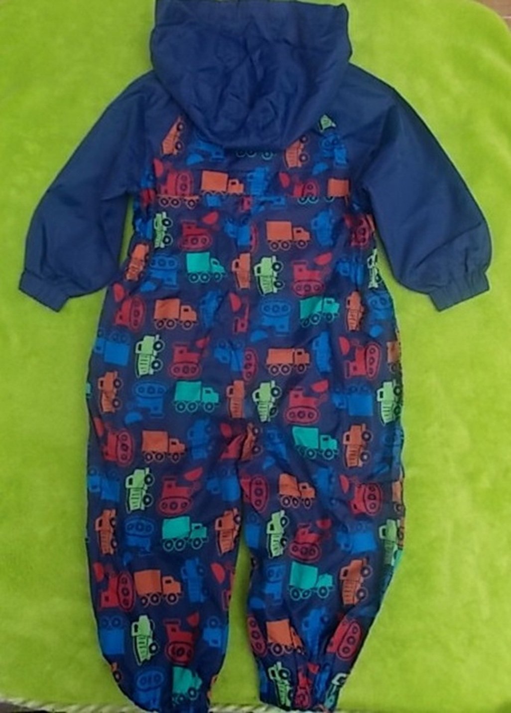 Frajerská jarní kombinéza, overal s barevnými autíčky v super stavu - je šusťákový, se síťovanou podšívkou. Zapínání na zip, kapucka, lemy rukávů i nohavic do gumy. Po stranách je v pase všitá guma - overal tak hezky sedí.