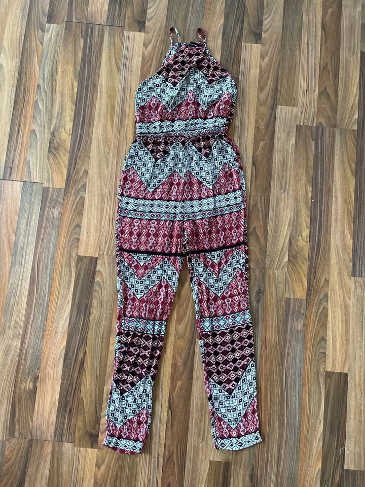2337. nabízím k prodeji tento kalhotový overal, vel S a myslím možno i méně volněji, Atmosphere. Letní, tenká, příjemná látka, pestrý vzor. Materiál 100% viscoza. Nošen, bez vad, jen u jednoho ramínka narušeno šití k živůtku - pár stehů, nic rušivého a lze dostáhnout a uložením pomačkán, krásný