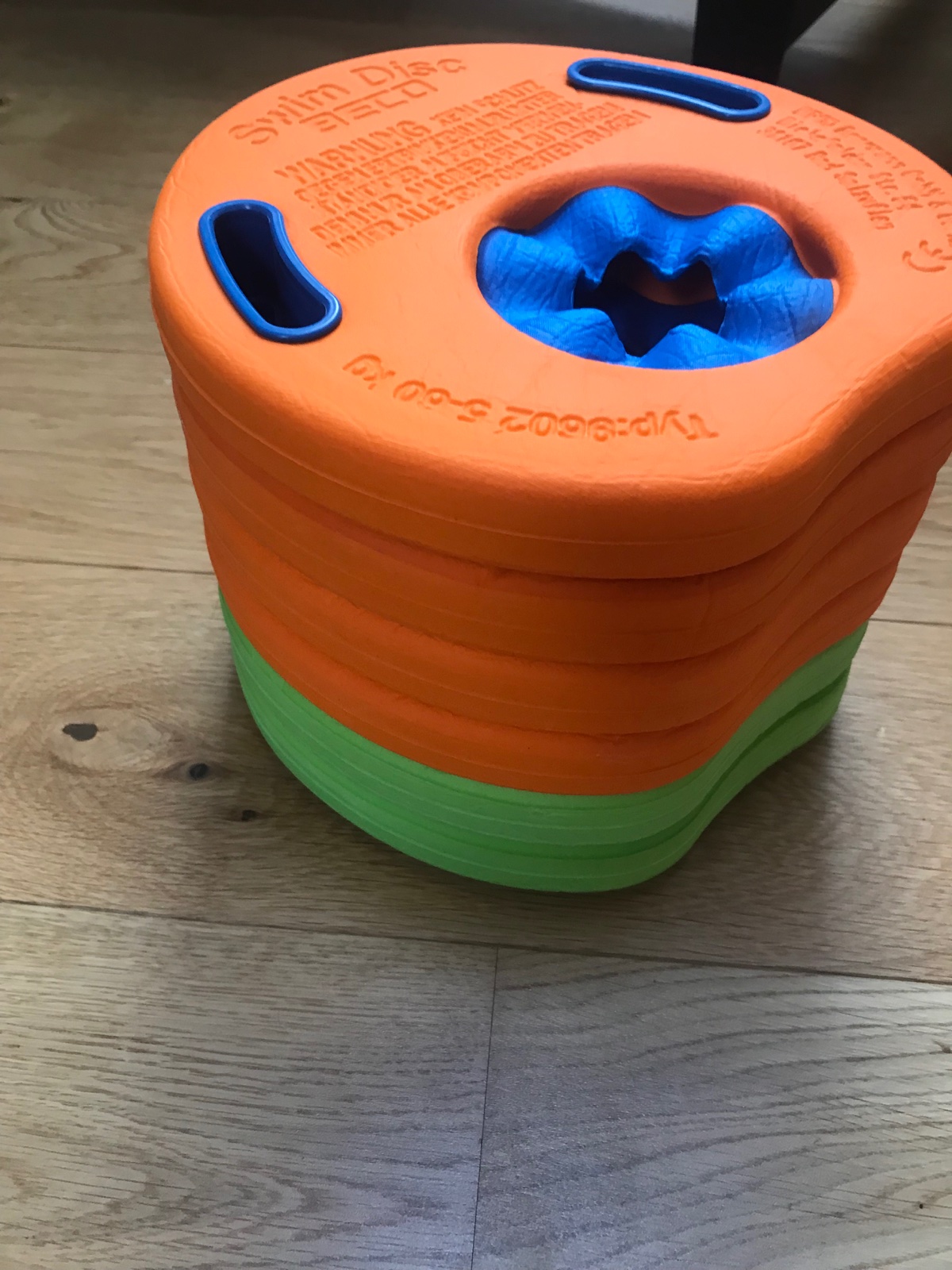 Šestidílná sada je vyrobena z PE pěny a má příjemný povrch. Tréninkové disky lze kombinovat různými způsoby a umožnit tak zvýšení nebo snížení vztlaku-ideální pro začátečníky i pokročilé uživatele. Plavecký set je ideální pro děti do 12 let nebo do hmotnosti 60 kg.