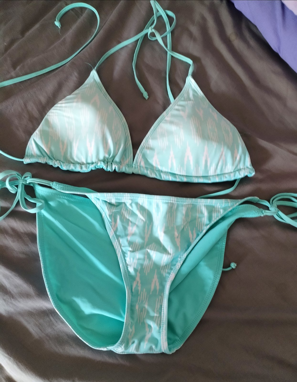 Použité loni na dovolenou, letos mi jsou velké. Podprda je uvnitř s vyndávací vložkou vel.C-úplně max.D s obvodem na 95cm. Kalhotky na boky max.120cm, dle uvázání šňůrek.Jsou podšité -dvojité, lze i oboustranně a neprosvítají. V případě zájmu nakoukněte , je tu toho mnohem víc a třeba vám v ceně jednoho poštovného 100,- padne ještě něco do oka a využijeme ho na 100% + při nákupu nad 1000,- je pošta zcela Grátis..!! Zásilkovna 90,-
