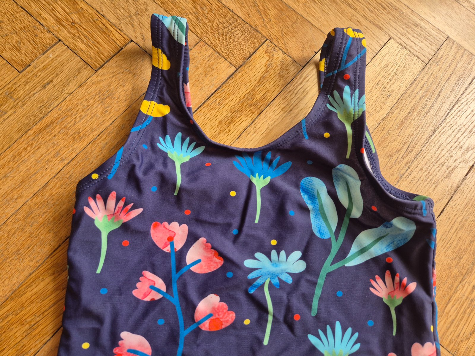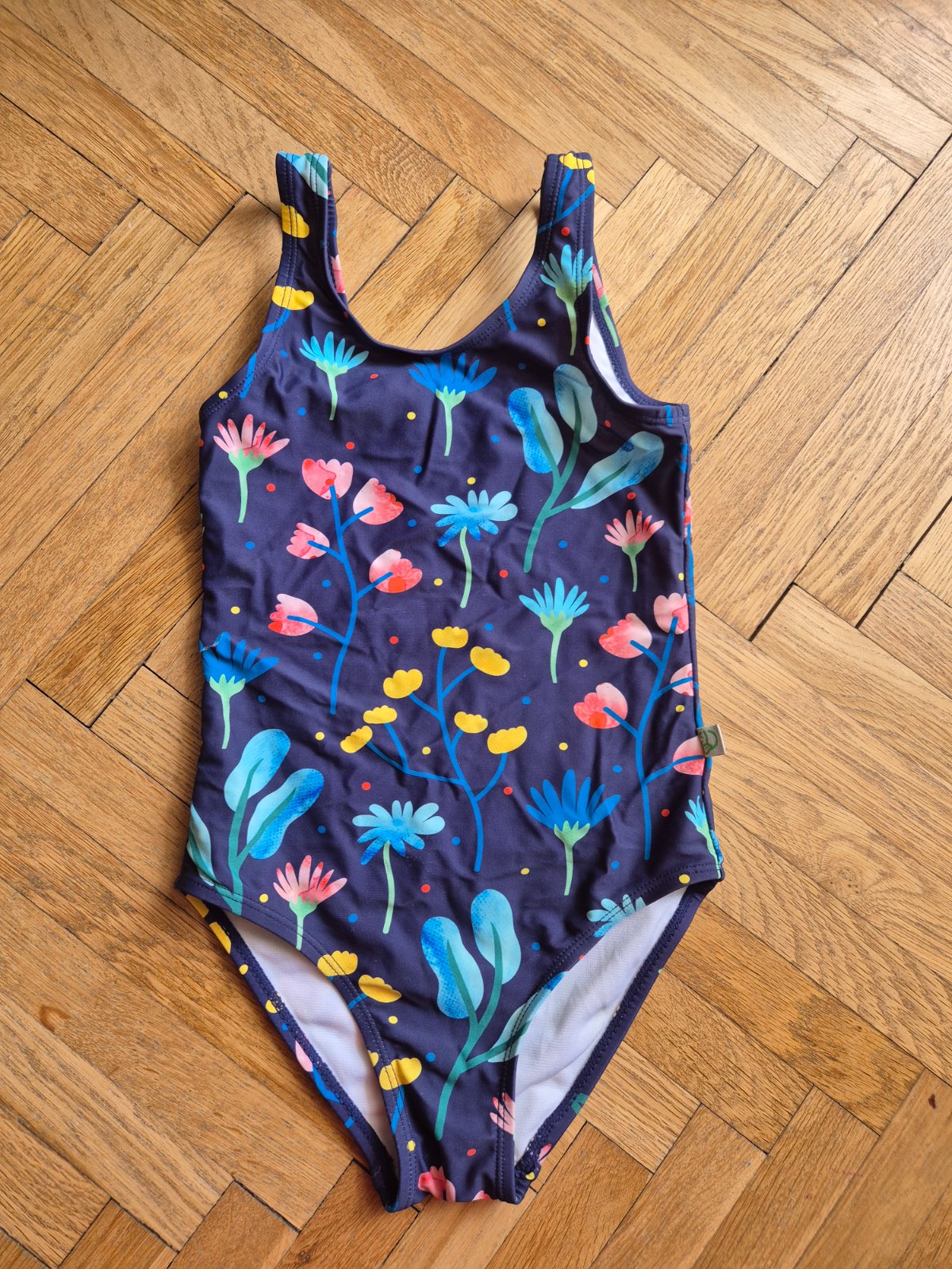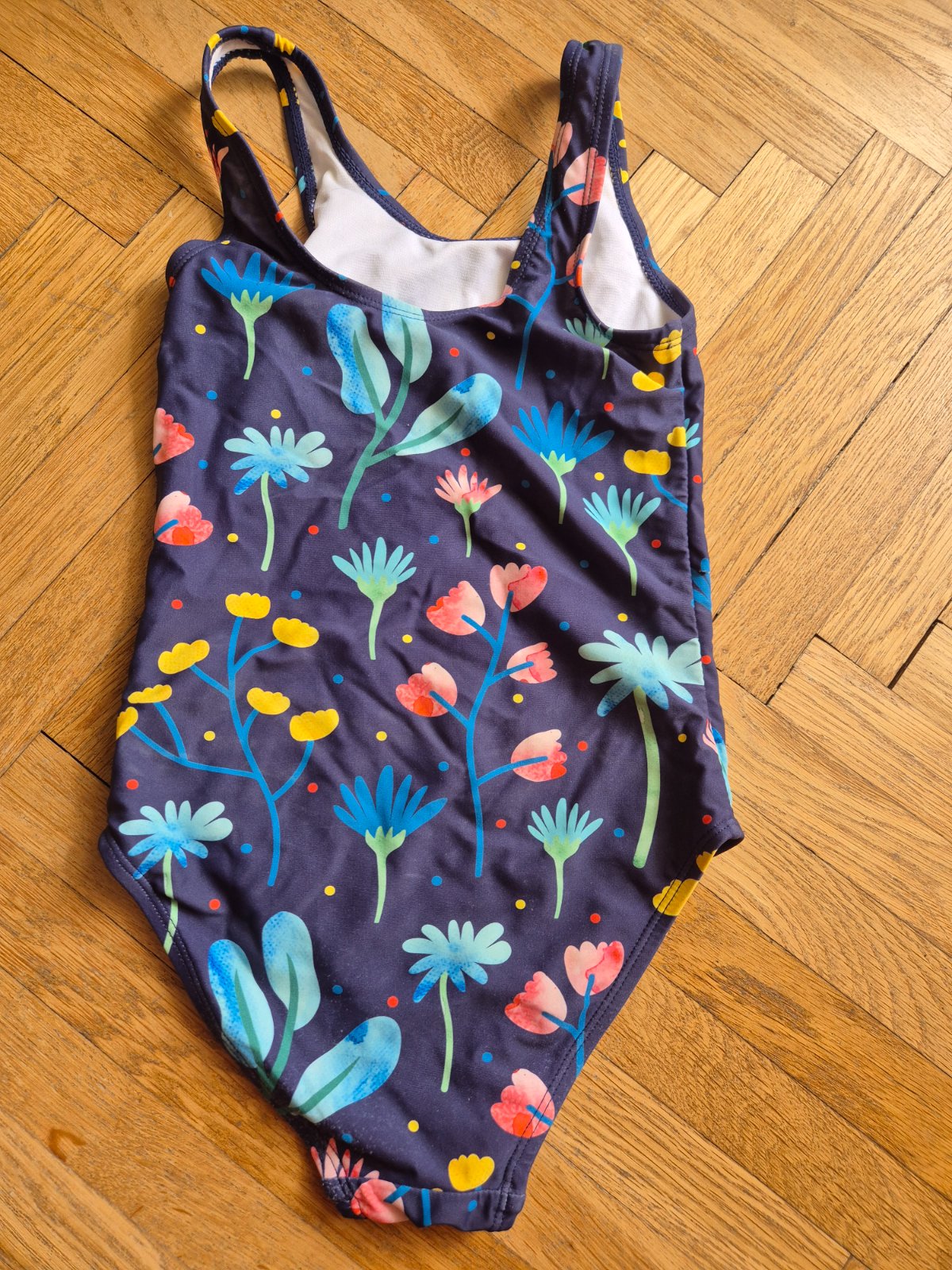 Dedoles 6-8 let, sedí spíš na 122, kupované nové pro naše dvojčata, nošené v první třídě na plavání (při velké nemocnosti)