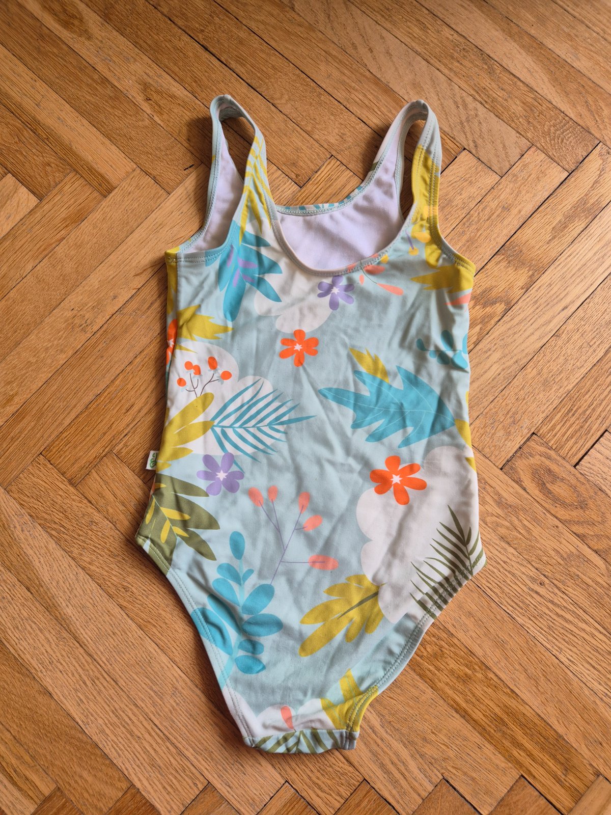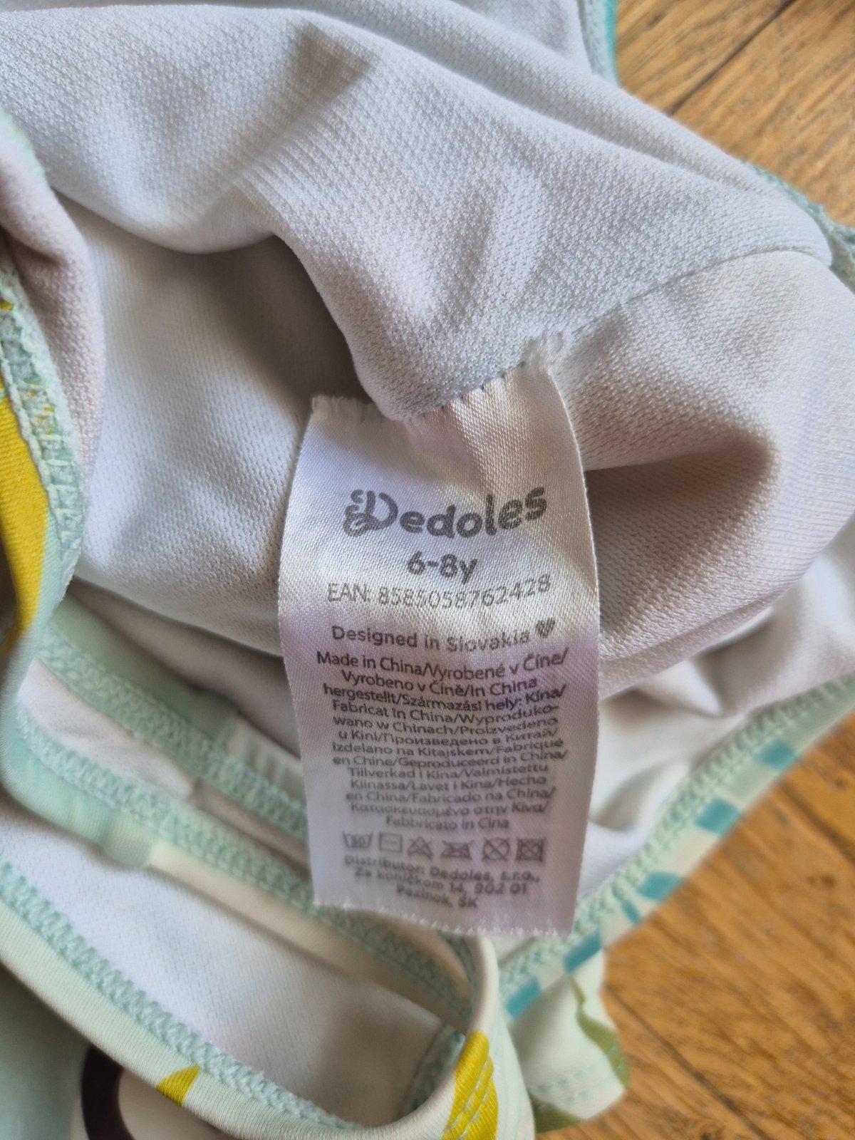 Dedoles 6-8 let, sedí spíš na 122, kupované nové pro naše dvojčata, nošené v první třídě na plavání (při velké nemocnosti)