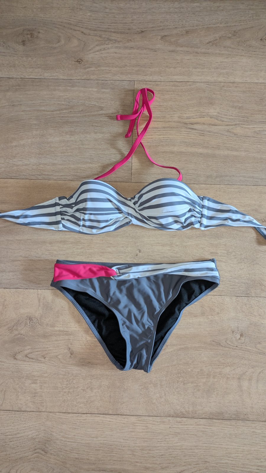 Dámské bikiny s push-up efektem, dvoudílné plavky, pruhované, se zavazováním za krkem. vel. S, 36