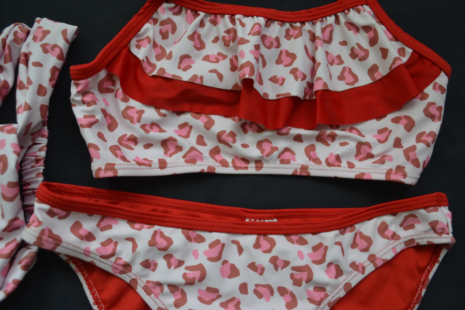 moderní pěkné dívčí plavky na 10-12l.+k plavkám i stejná čelenka,plavky krásně sedí,nastavitelná ramínka,hezky pružné a příjemné,cena za celou soupravu