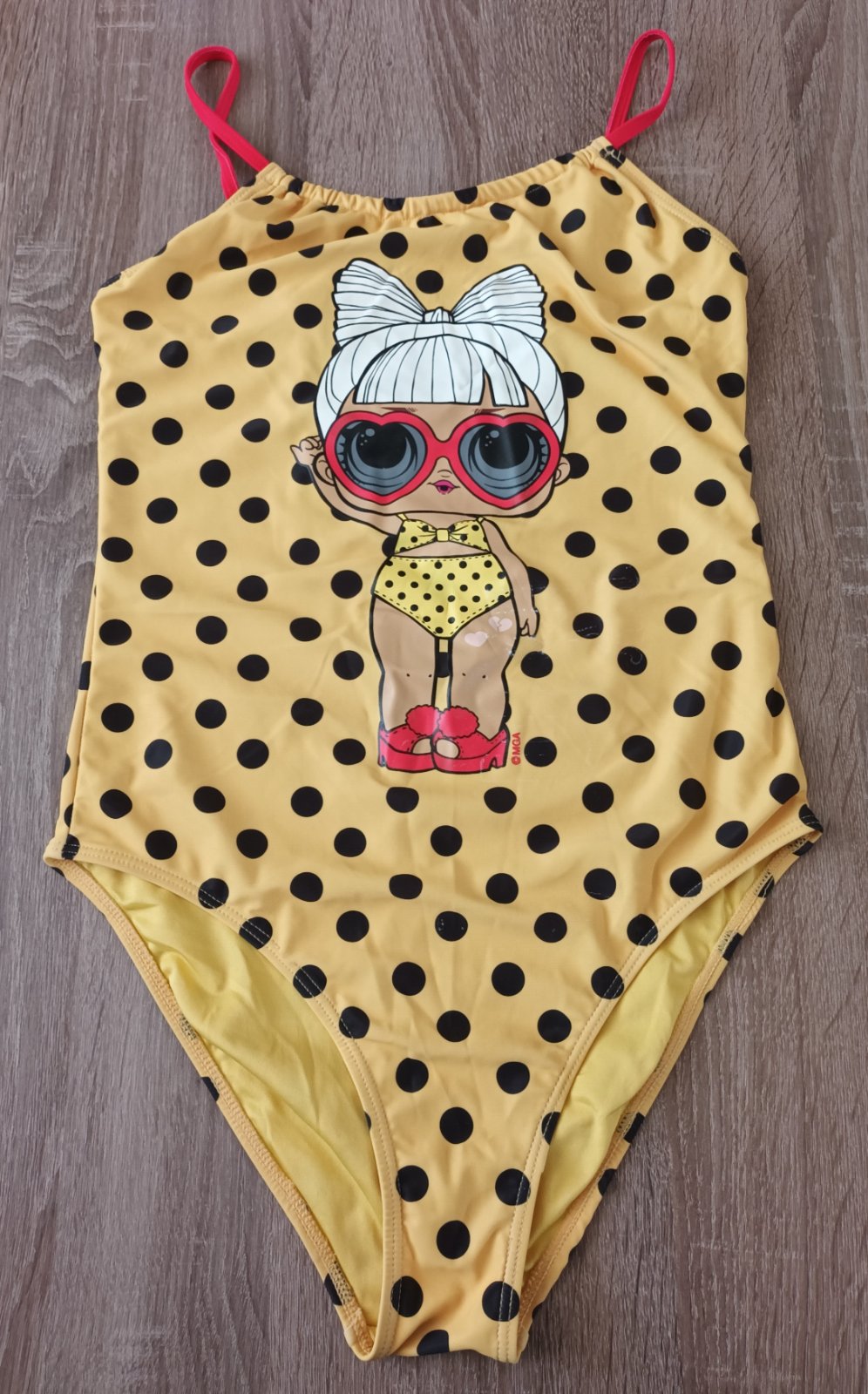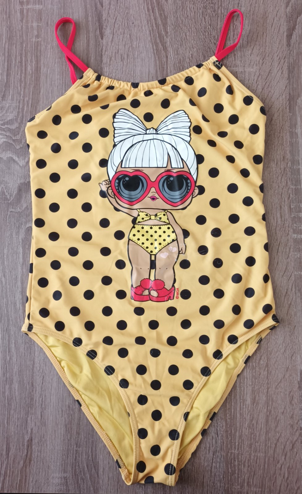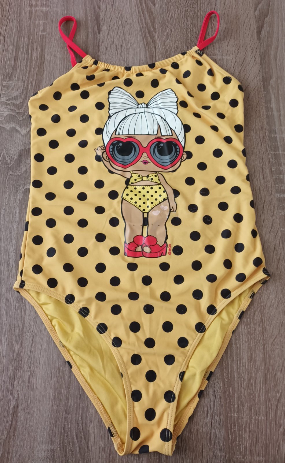 Moc krásné dívčí plavky LOL, vel.158/164. Krásná sytá žlutá barva, potisk(obrázek) bez vad. Nastavitelná ramínka. Plavky jsou šetřené, jako nové, bez vad.