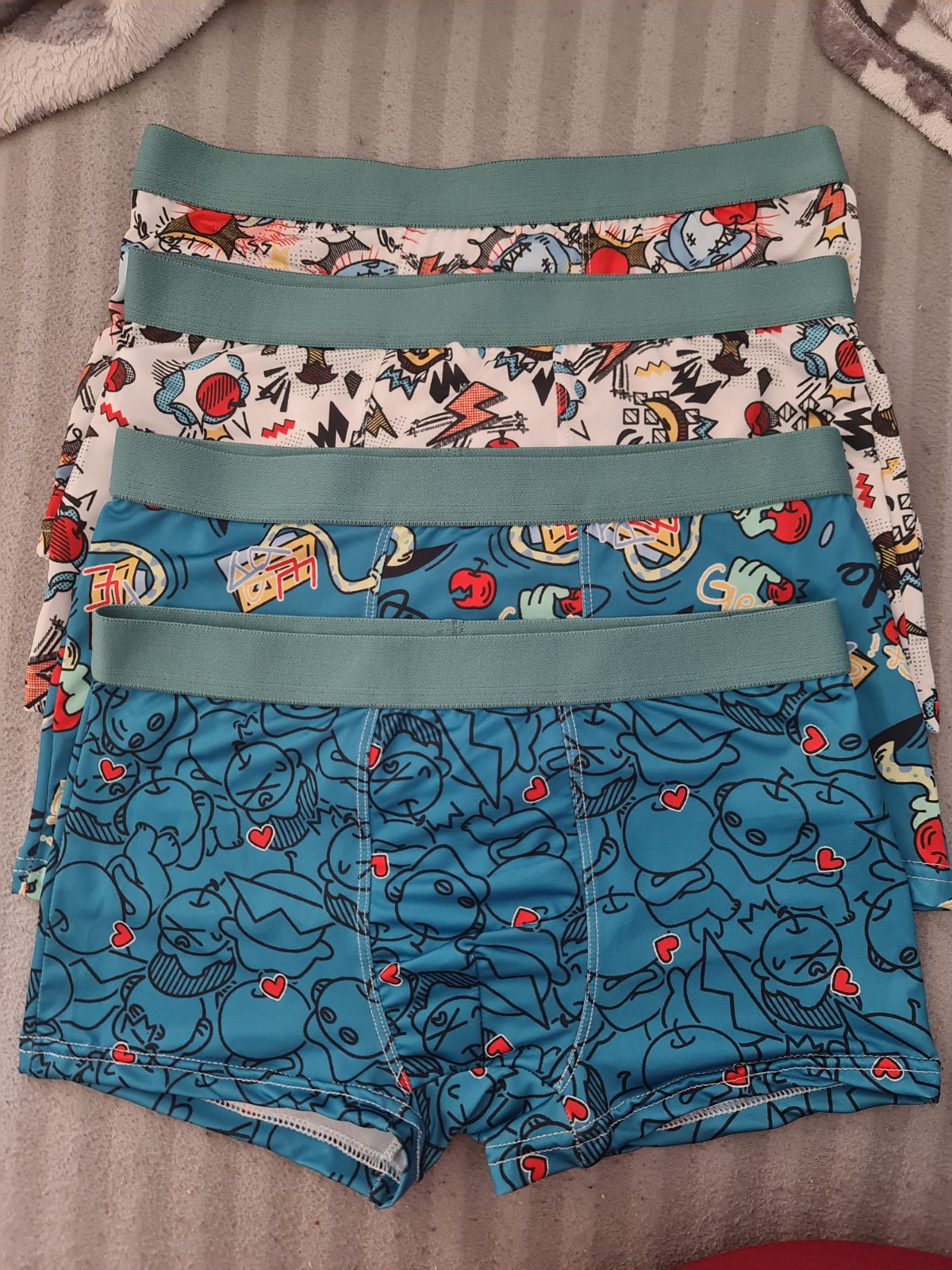 Plavkové boxerky, objednané ze Sheinu za 250,- ve velikosti 14let....bohužel přišli strašně maličké, takže je ten náš haban vůbec neoblekl 🤦 Doufám že někomu určitě udělají radost.