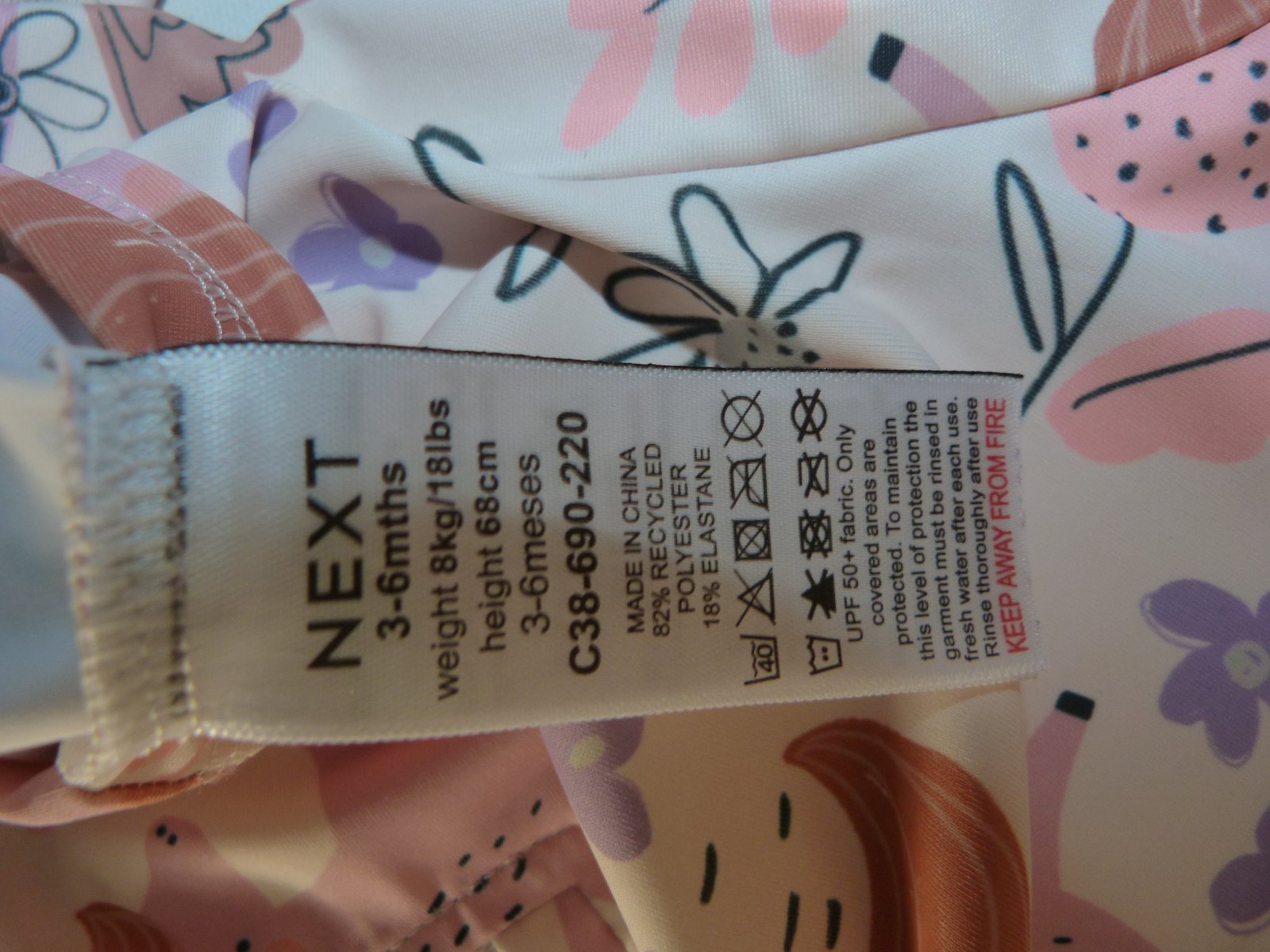 Next plavkový overal UPF 50+ vel. 68, d 40cm, bez známek nošení,