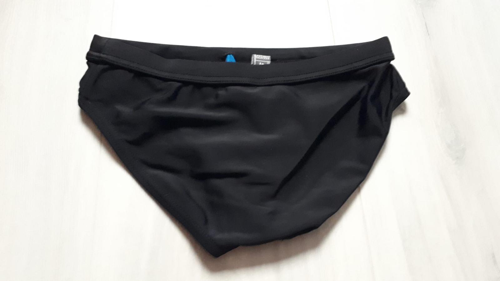 Chlapecké slipové plavky, černé, vel. 5/7let. Nenošené. Posíláme dál.