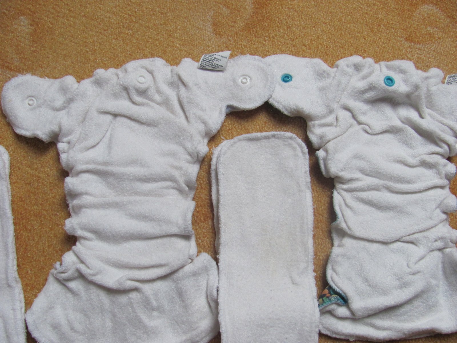Novorozenecké svrchní PUL kalhotky 2-6 kg vkládací pleny bambusové a fleece. 2ks novorozenecké 2-6 kg, 2ks normal 5-15 kg. Vkládací pleny novorozenecké, ale používala jsem je i do normálních 5ks fl...