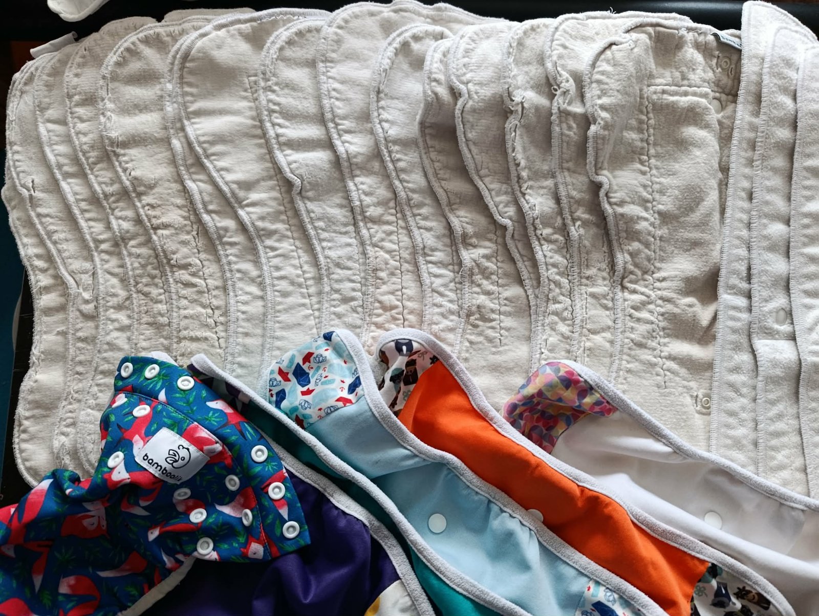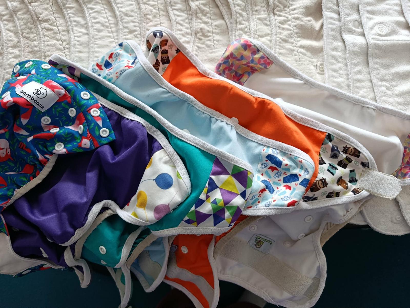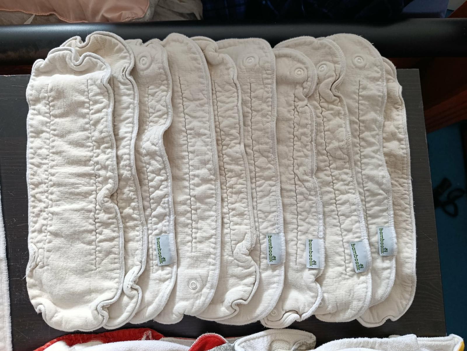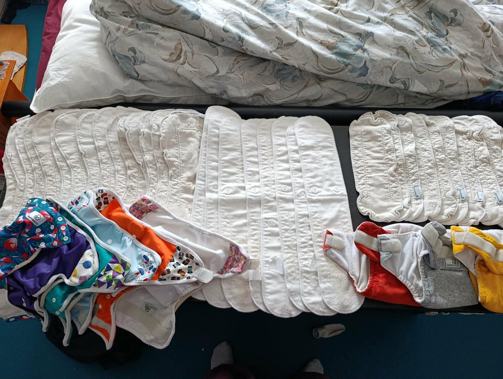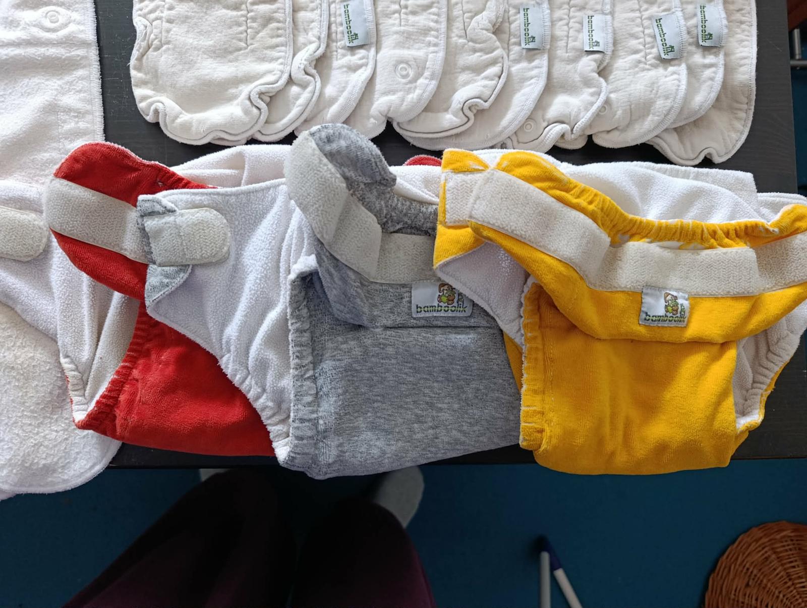 Velká sada od Bambooliku, od 4 do 15kg včetně speciálních nočních plen a tréninkových svrchních kalhotek. Typ AI2. Původní cena 10 000 Kč. Skoro celá sada je po dvou dětech, delší úzké pleny jsou po jednom dítěti.