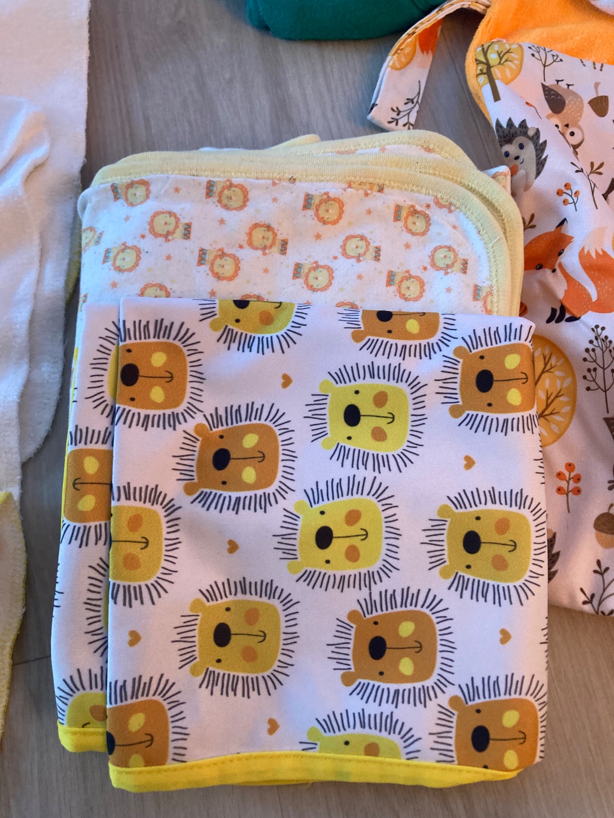 Prodám velkou sadu plenek a příslušenství k přebalování. Vše použité, na všech kusech vyjma koupacích plaveček je opotřebení znát. Gumy v pase ale drží. Zatím nejsou zteřelé.