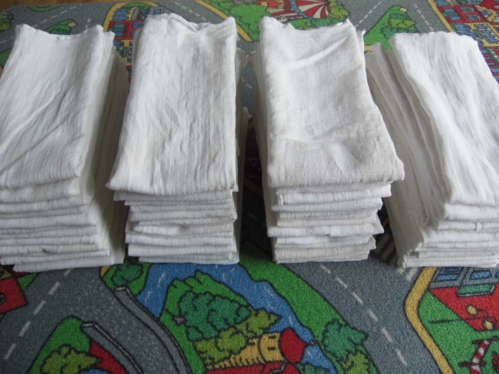 Nabízím celkem 66ks použitých "čtvercových" látkových plenek. Plenky jsou používané, prané. I přesto na některých jsou fleky, 3ks víc flekaté, 20ks jsou lehce špinavé/flekaté.