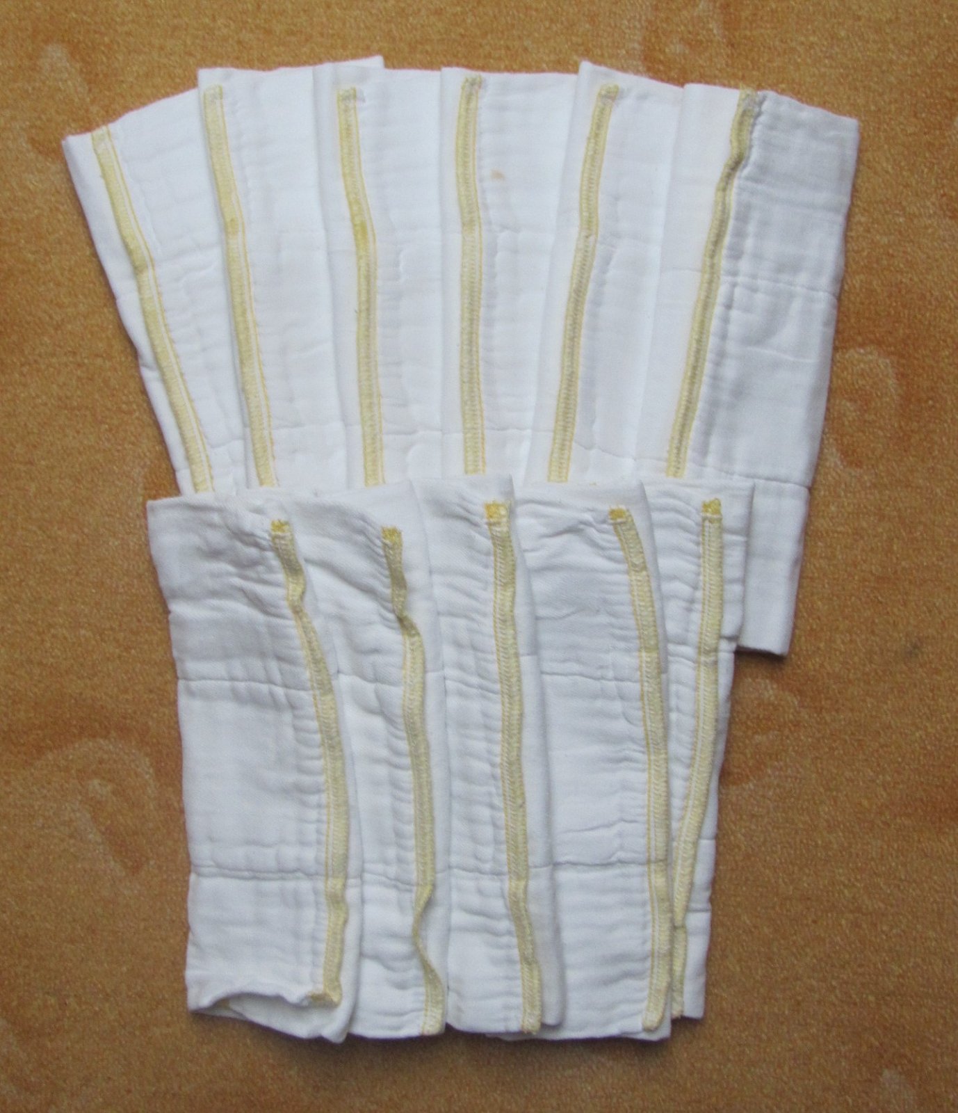 Vícevrstvé plenky XKKO Infant (3-7 kg), rozměry cca 32×34 cm, 16 ks, ve velmi dobrém stavu, pouze 2 mají skvrny. Skládaná bavlněná plena se čtyřmi vrstvami na okrajích a osmi vrstvami uprostřed. P...