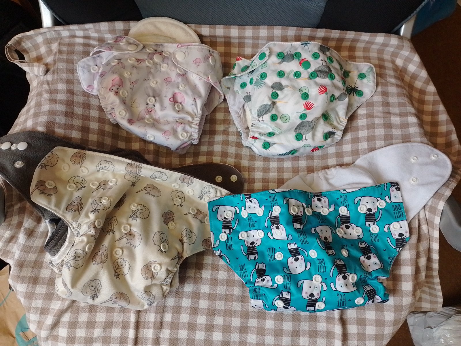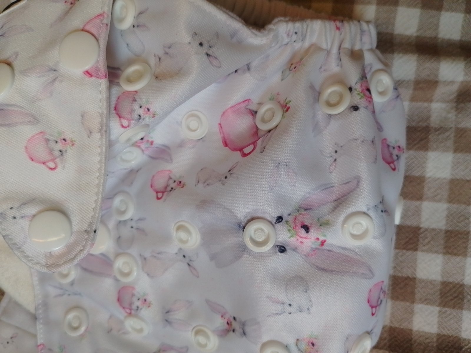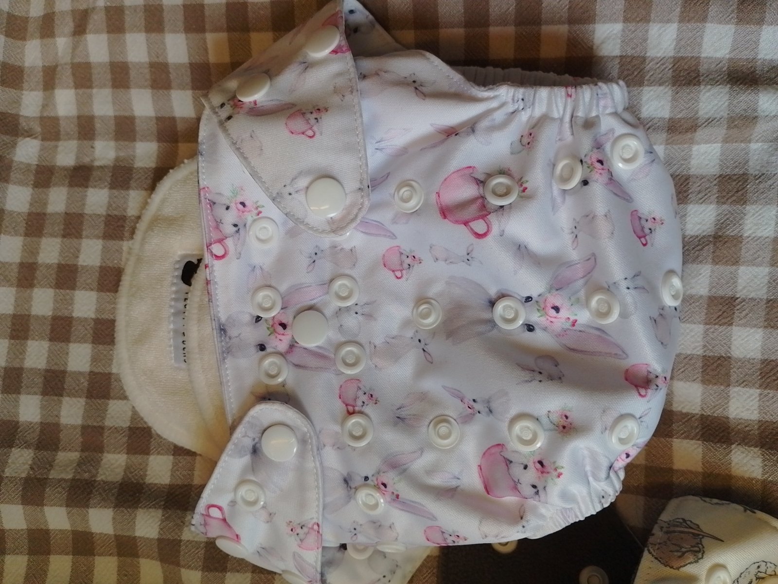 Plenky Fluffy Ducks a Little Genie z Noveho Zelandu (+ jedna ceska - viz jiny inzerat). Fluffy ducks vnejsi plenka s roztomilym designem (ruzovi kralicci a kiwi), vnitrni vlozky bambusove.