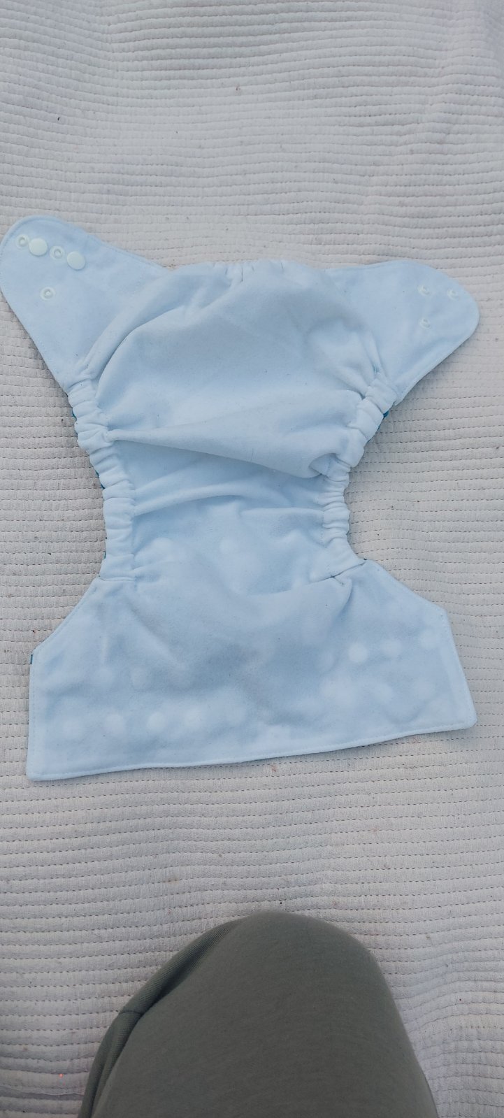 Vnější nepromokavá vrstva pro vkládací plenku, podšitá fleecem. Univerzální nastavitelná velikost. Použitá možná jednou, látkování nám příliš nešlo.