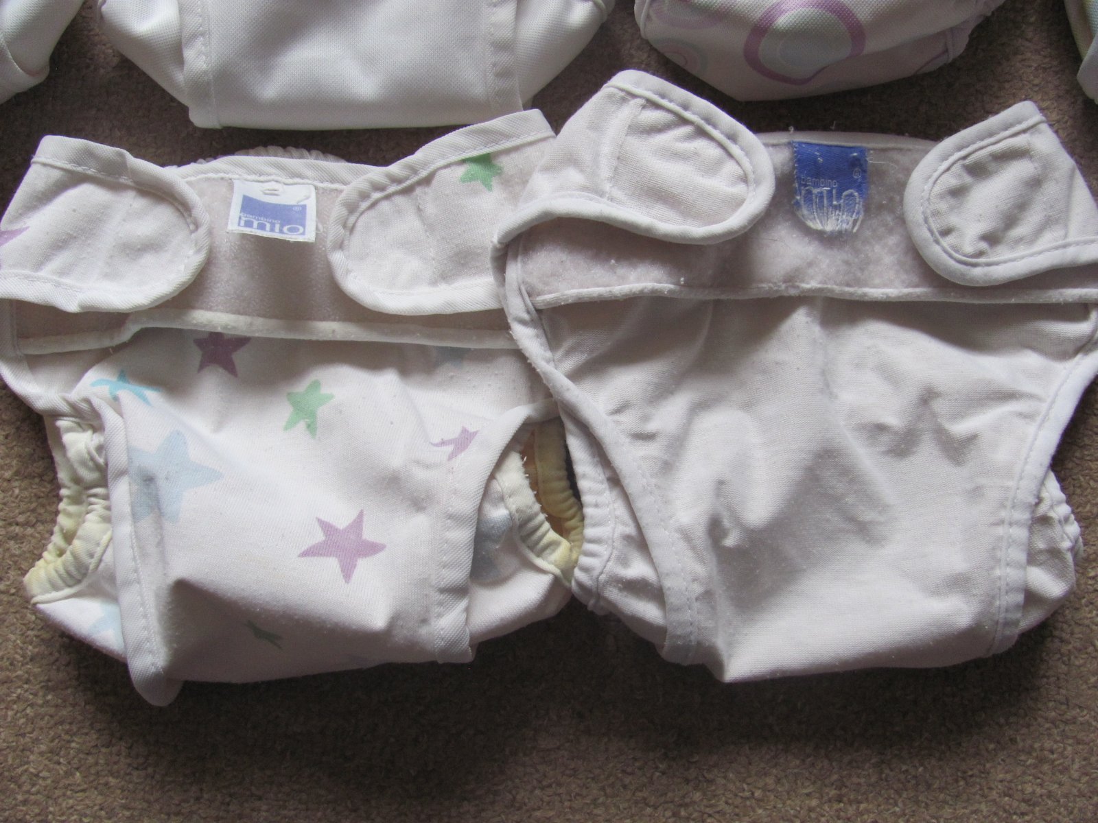 Plenkové kalhotky svrchní Bambino Mio, 5-7 kg, 5 ks + 2 ks zdarma. Používané, ale ve velmi dobrém stavu, funkční, bez vad (2 ks zdarma - skvrny). Lze koupit i po kusech, 50 Kč/ks, při koupi všech celková cena 200 Kč.