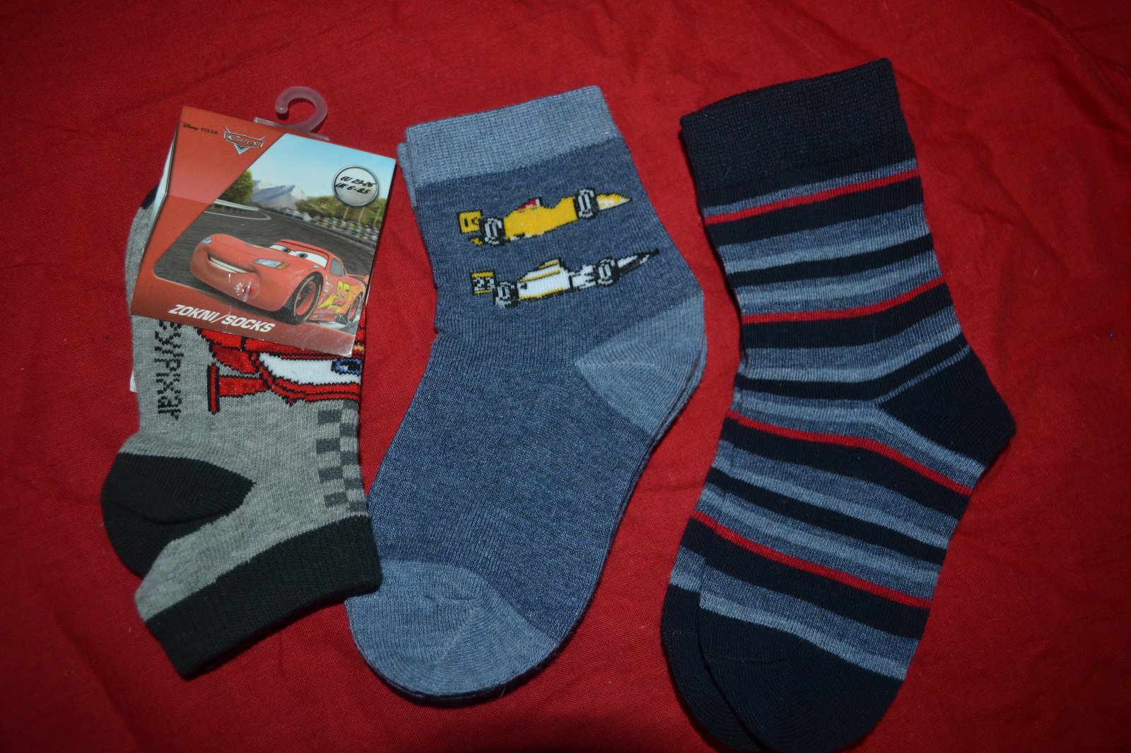3x výborné ponožky s auty,2x v.26-27, 1x v.23-26,pružné,dobře sedí,cena za všechny celkem