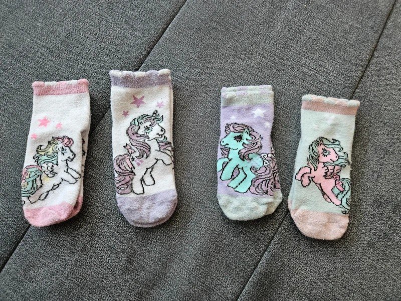 4x ponožky s motivem My Little Pony, velikost 23/26, mají v sobě třpytivé nitky, nošené ale nemají nikde díry