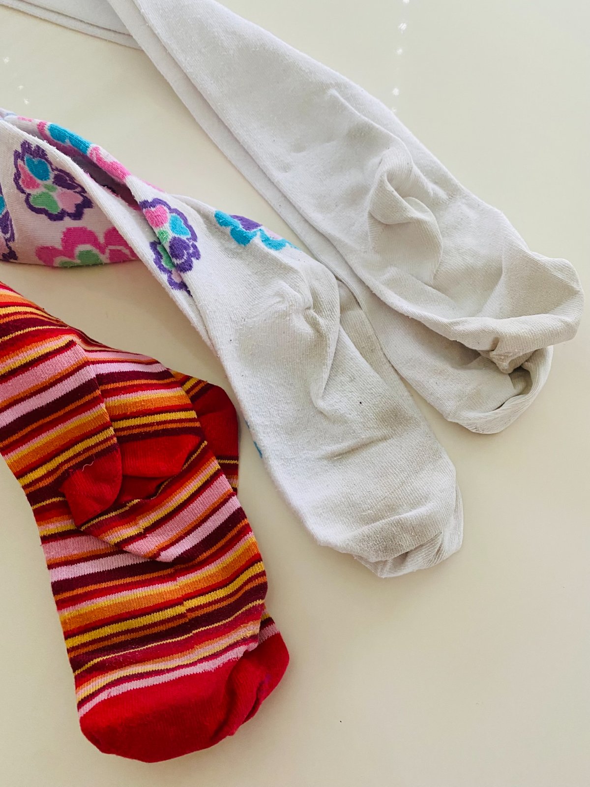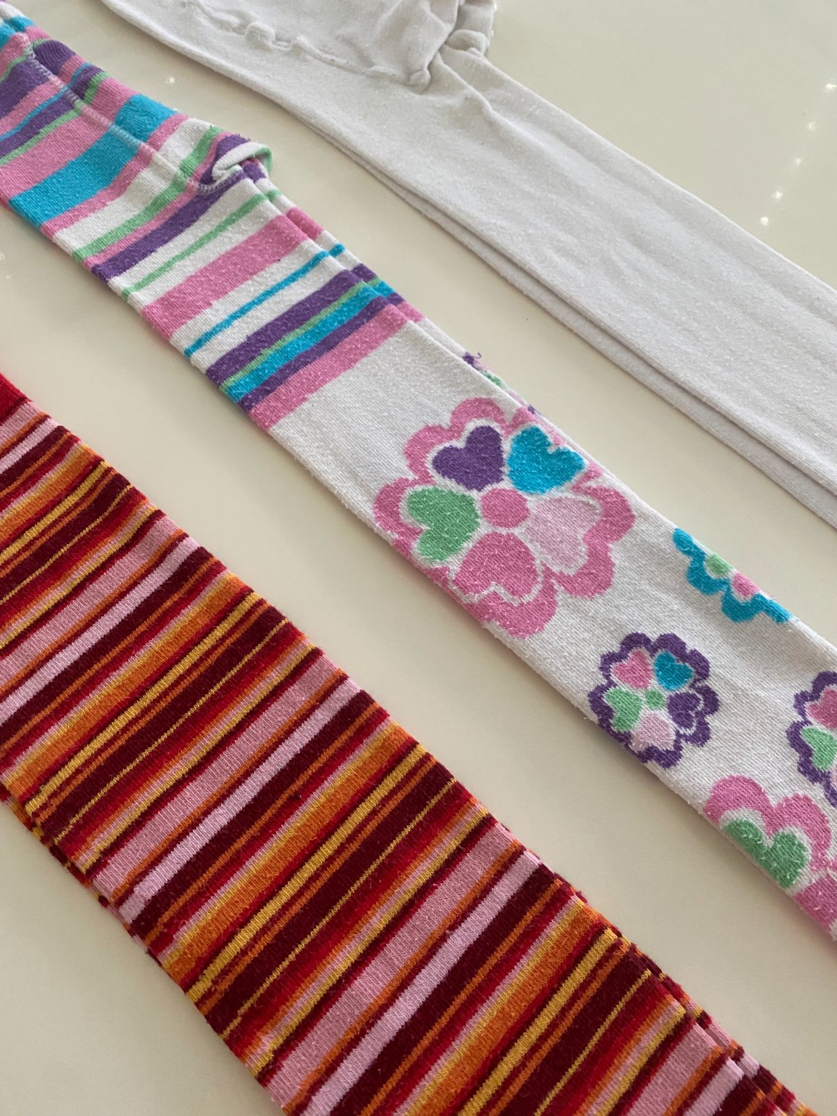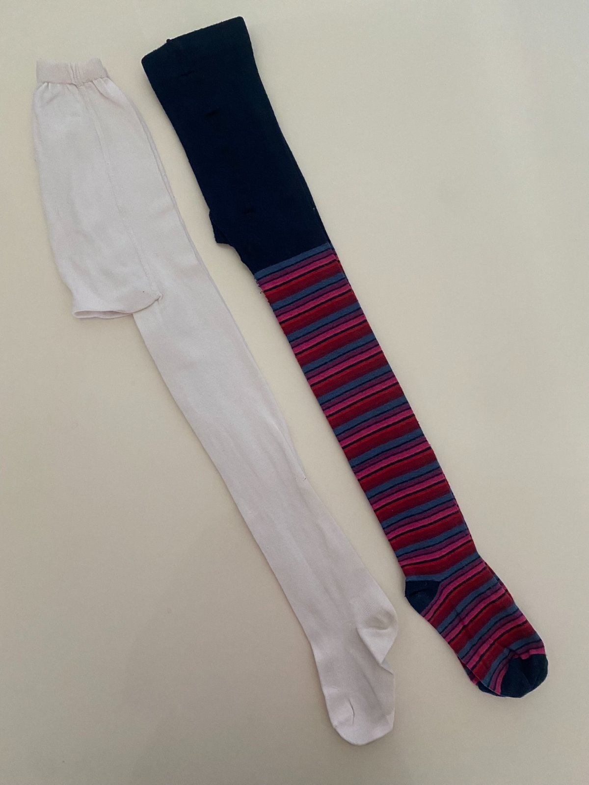 Proužkované nošené minimálně, tm. modré vyprané pouze jednou, na světlých jsou ušmudlaná chodidla.
