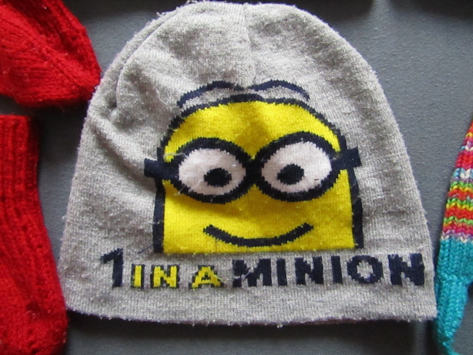 čepice s Mimoňem ,úpletová,nošena při vel.86/92-cena 25 kč