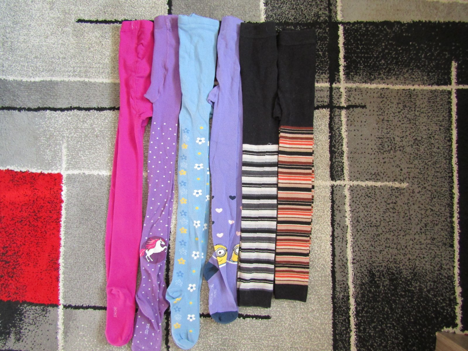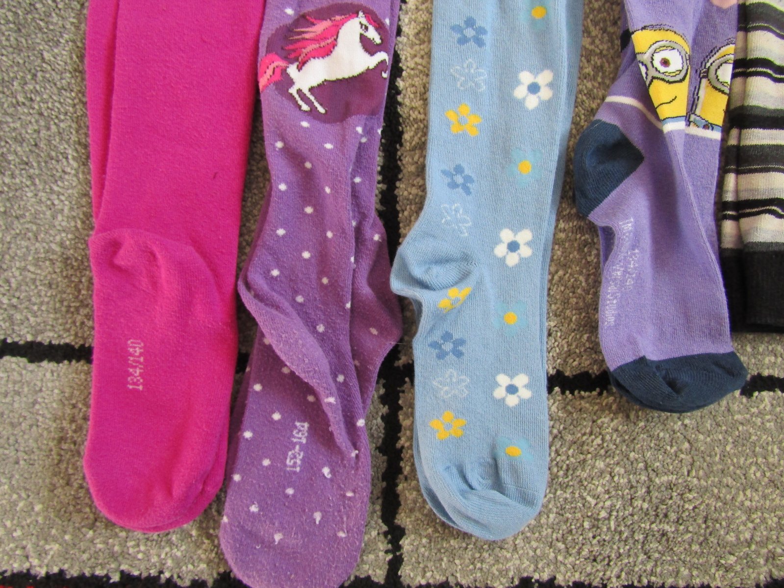 6 xpunčocháče pro holku viz.foto,velikosti uvedeny různě,nošeno při vel.134/140,délka punčocháčů je 89-93 cm,punčocháče bez ťapek měří-70 a 76 cm,ty hnědo černé jsou po straně zašívané.