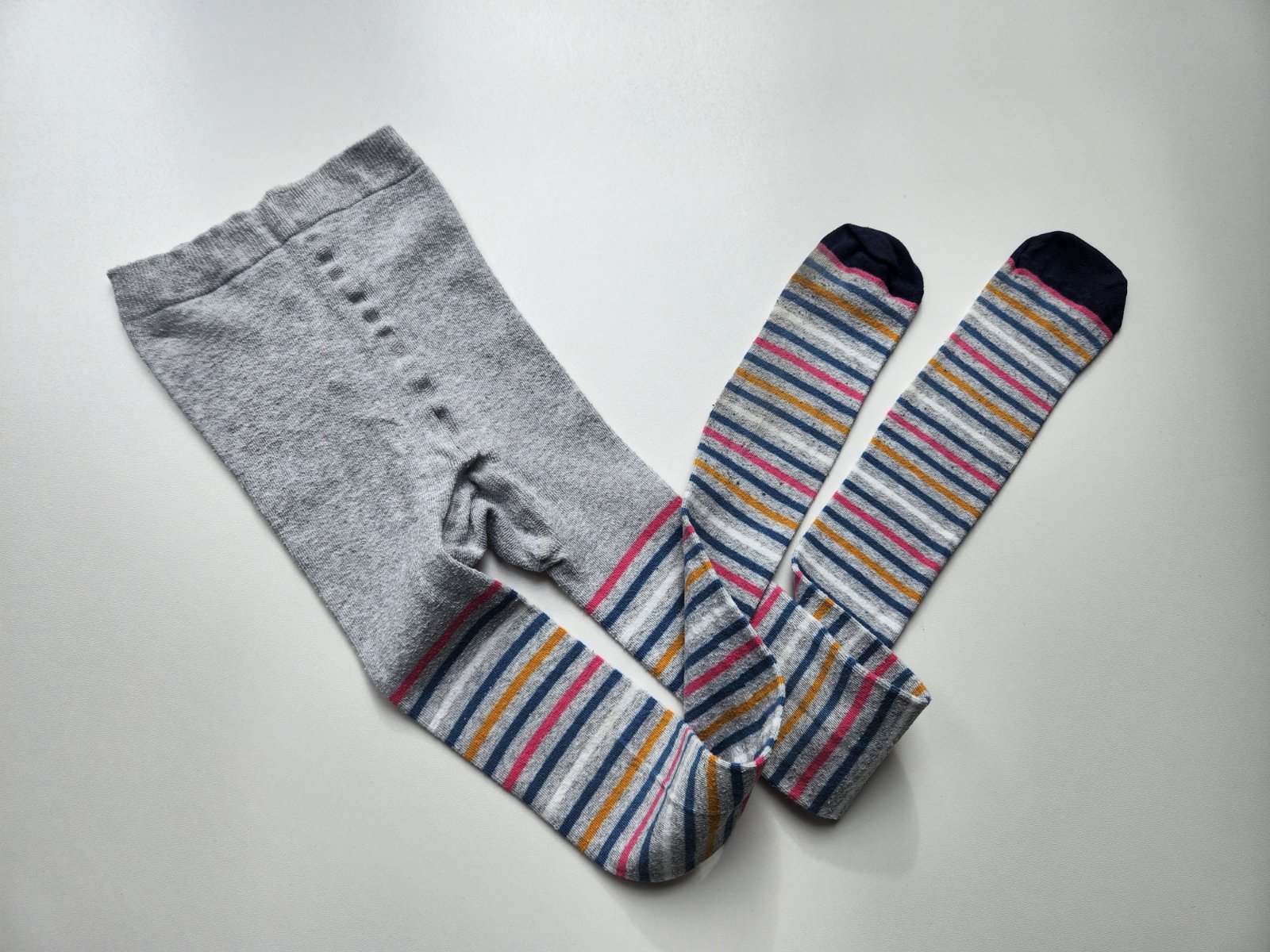 Světle šedé melírované pružné punčocháče s barevnými proužky, bez paty.
