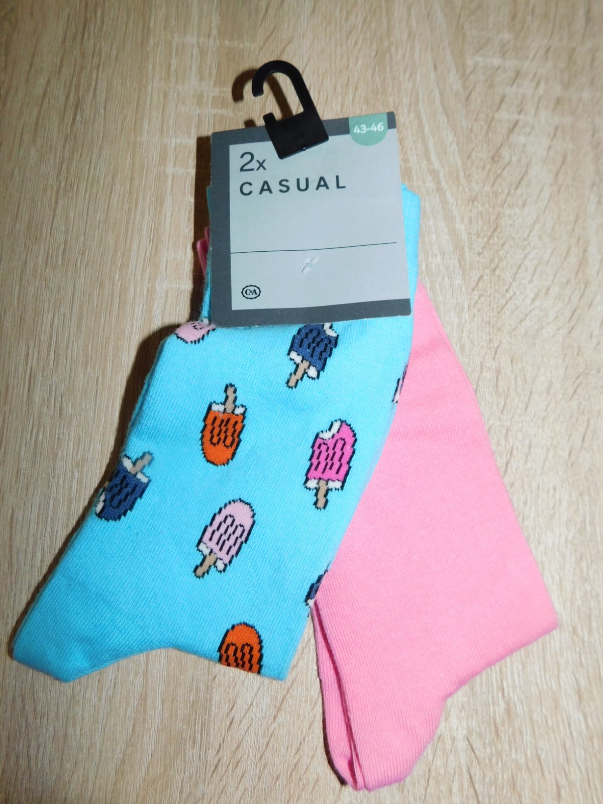 Parádní ponožky s módním desingem .... Nové .... 1.bal.= 2 ks ... vyrobeny jsou z v kombinaci bavlny, polyamidu a elastanu ... vel. 43/46 .... budu uvádět vel. 44 .... cena za celé balení .....