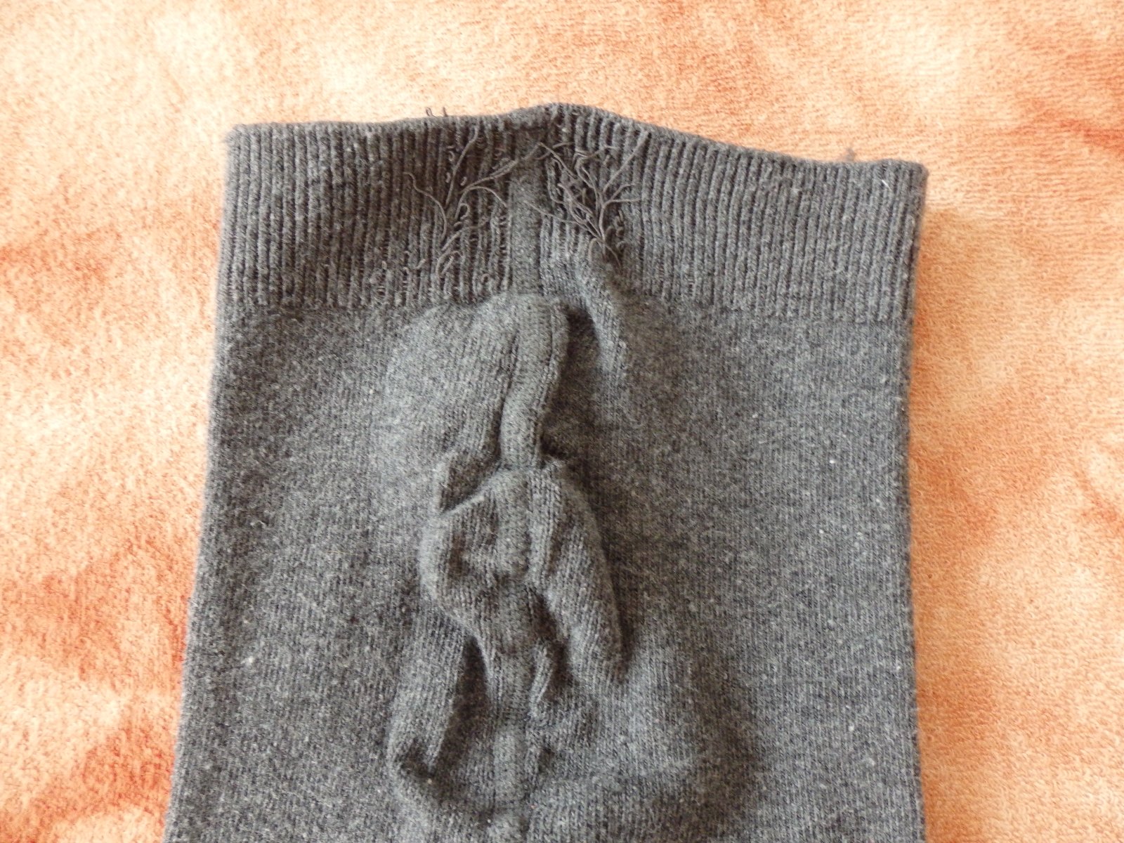 Šedé punčocháče se vzorem, v dobrém stavu, ale vzadu i vpředu na pasu se začínají třepit gumičky. Asi půjdou zastříhnout, nechala jsem na nového majitele.