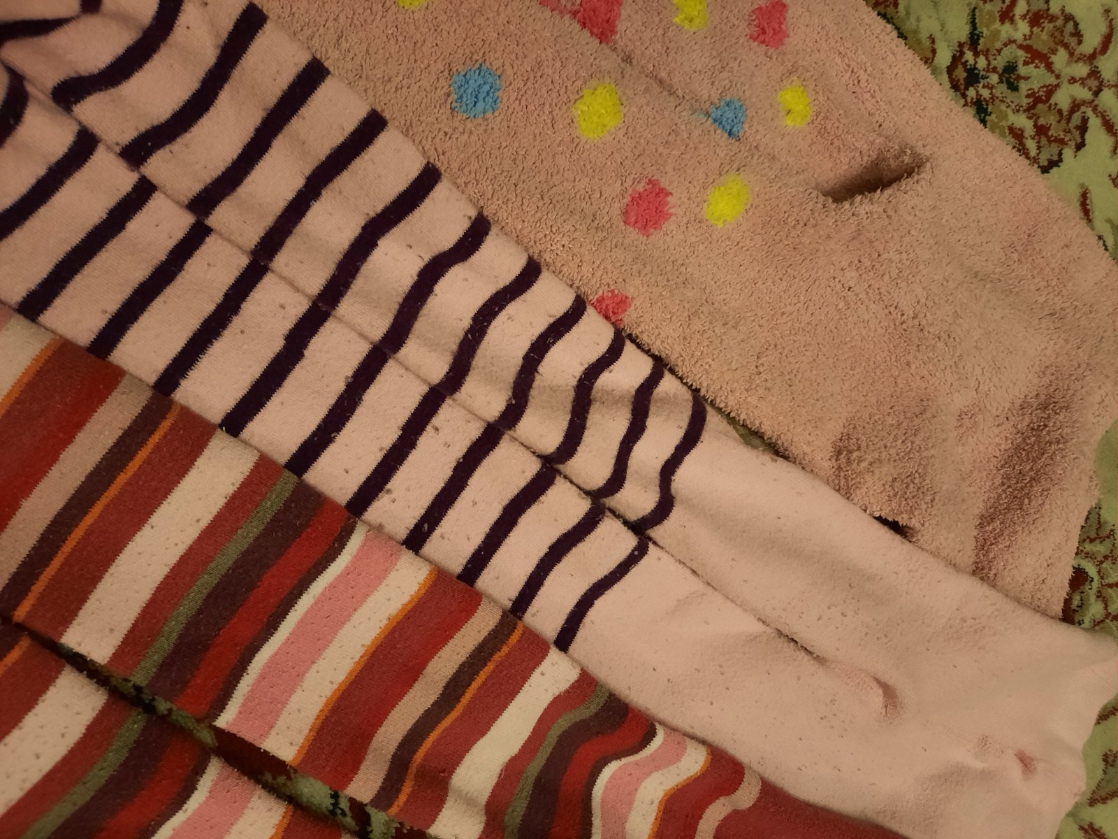 Patičky puntíkatých řidší-zdarma, pruhaté froté žmolík, cena celkem. 98/104.