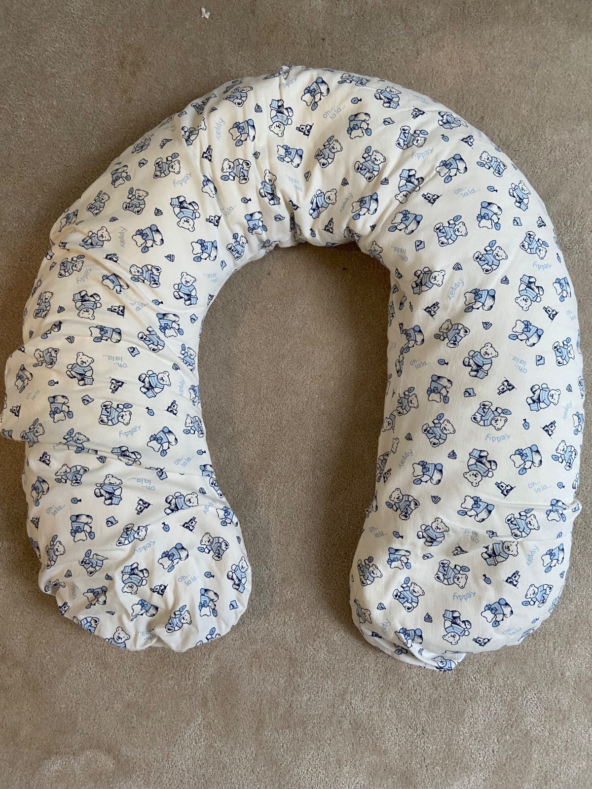 Prodám kojící polštář šitý na míru. Povlaky jdou vyprat. Jedna se o 100% bavlnu. Polštář je vyplněn PES kuličkami.