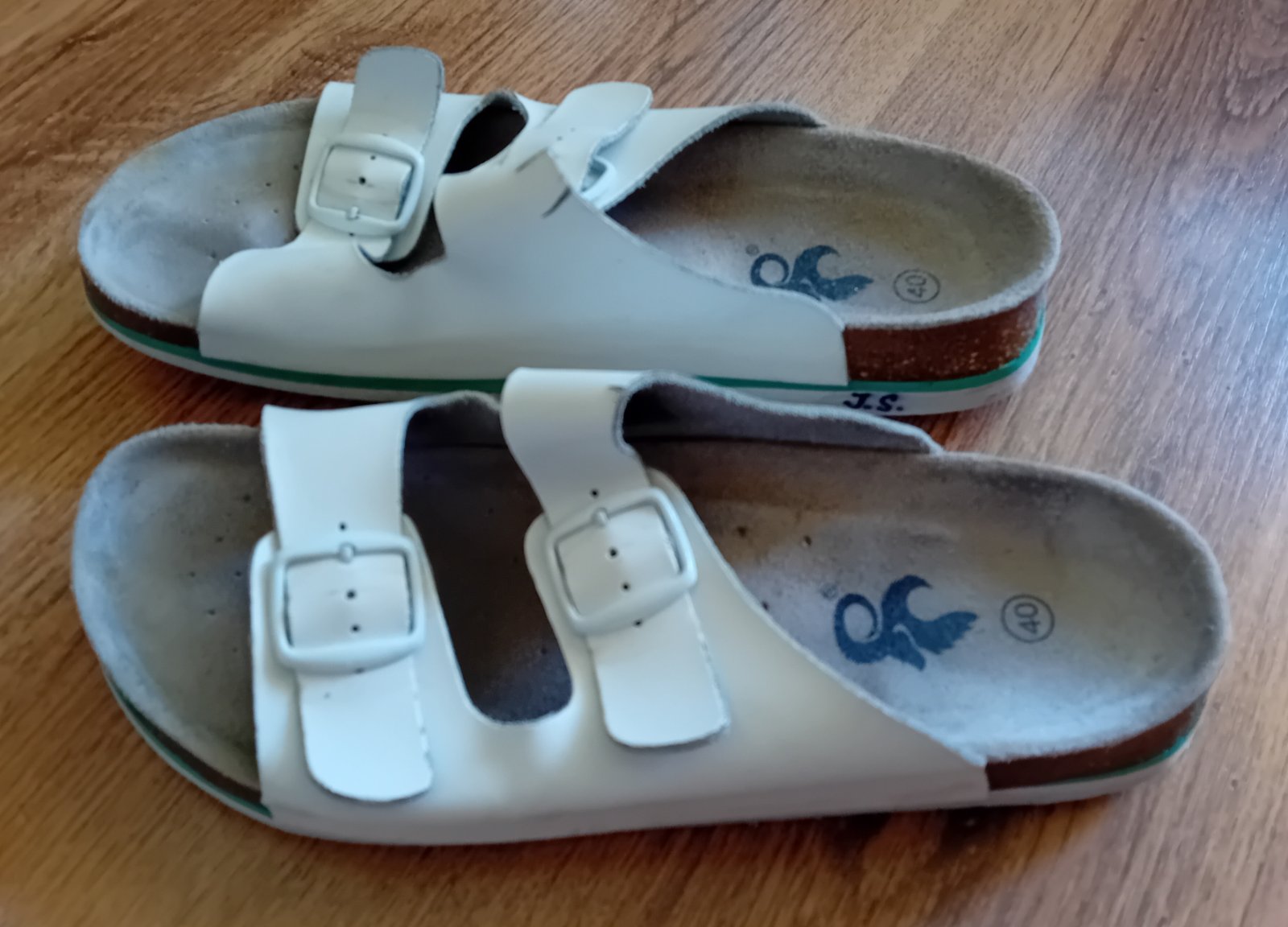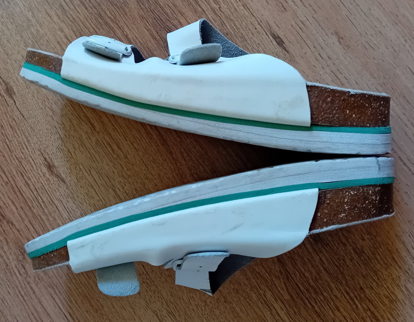 Levá spodní pásek na třech místech natrhlé-viz foto.Pravá spodní pásek na jednom místě natrhlé -viz foto.Fixou na vnitřnich stranách bot napsané iniciály.